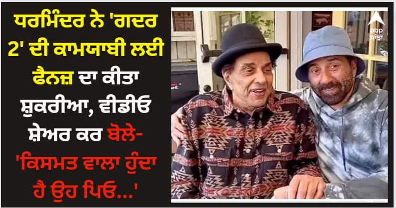 'ਗਦਰ 2' ਦੀ ਸਫਲਤਾ 'ਤੇ ਧਰਮਿੰਦਰ ਨੇ ਪ੍ਰਸ਼ੰਸਕਾਂ ਦਾ ਕੀਤਾ ਧੰਨਵਾਦਇਸ ਤੋਂ ਇਲਾਵਾ ਉਨ੍ਹਾਂ ਨੇ ਇਕ ਫੋਟੋ ਵੀ ਸ਼ੇਅਰ ਕੀਤੀ ਹੈ, ਜਿੱਥੇ ਉਨ੍ਹਾਂ ਨੇ 'ਗਦਰ 2' ਦੀ ਸਫਲਤਾ ਲਈ ਪ੍ਰਸ਼ੰਸਕਾਂ ਦਾ ਧੰਨਵਾਦ ਕੀਤਾ ਹੈ। ਇਸ ਦੇ ਨਾਲ ਹੀ ਉਨ੍ਹਾਂ ਨੇ ਬਹੁਤ ਖੂਬਸੂਰਤ ਸੰਦੇਸ਼ ਵੀ ਲਿਖਿਆ ਹੈ। ਉਨ੍ਹਾਂ ਲਿਖਿਆ, 'ਦੋਸਤੋ, ਖੁਸ਼ਕਿਸਮਤ ਪਿਤਾ ਉਹ ਹੁੰਦਾ ਹੈ, ਜਿਸ ਦਾ ਪੁੱਤਰ ਕਦੇ ਪਿਤਾ ਬਣ ਕੇ ਬੱਚਿਆਂ ਨਾਲ ਲੜਦਾ ਹੈ। ਸੰਨੀ ਮੈਨੂੰ 'ਗਦਰ 2' ਦੀ ਸਫਲਤਾ ਦਾ ਆਨੰਦ ਲੈਣ ਲਈ ਅਮਰੀਕਾ ਲੈ ਕੇ ਆਇਆ। ਦੋਸਤੋ, ਮੈਂ ਤੁਹਾਡੀਆਂ ਸ਼ੁਭਕਾਮਨਾਵਾਂ ਲਈ ਤੁਹਾਡੇ ਸਾਰਿਆਂ ਦਾ ਧੰਨਵਾਦੀ ਹਾਂ ਕਿ ਤੁਸੀਂ 'ਗਦਰ 2' ਨੂੰ ਇੱਕ ਬਲਾਕਬਸਟਰ ਫਿਲਮ ਬਣਾਇਆ ਹੈ।