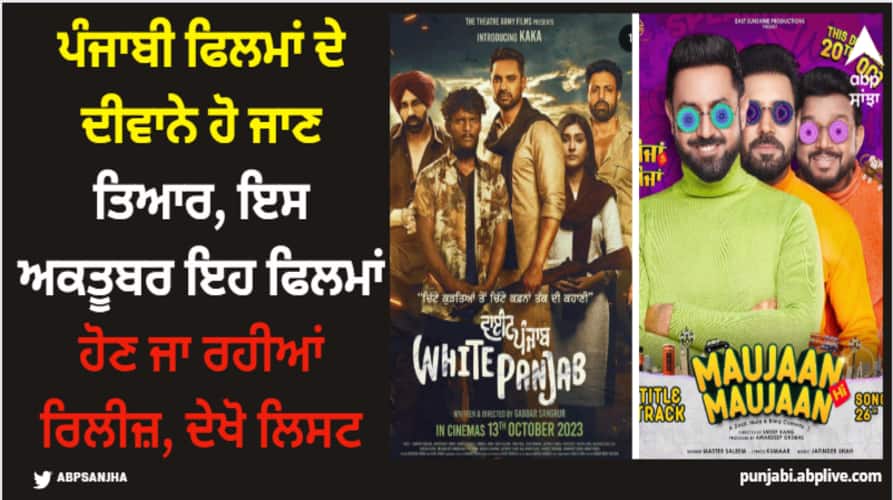 ਖੈਰ ਅੱਜ 30 ਸਤੰਬਰ ਹੈ ਅਤੇ ਕੱਲ੍ਹ ਤੋਂ ਅਕਤੂਬਰ ਮਹੀਨਾ ਸ਼ੁਰੂ ਹੋਣ ਜਾ ਰਿਹਾ ਹੈ। ਇਸ ਦਰਮਿਆਨ ਅਸੀਂ ਤੁਹਾਨੂੰ ਦੱਸਣ ਜਾ ਰਹੇ ਹਾਂ ਕਿ ਅਕਤੂਬਰ ਮਹੀਨੇ 'ਚ ਕਿਹੜੀਆਂ ਪੰਜਾਬੀ ਫਿਲਮਾਂ ਸਿਨੇਮਾਘਰਾਂ 'ਚ ਦਸਤਕ ਦੇਣ ਜਾ ਰਹੀਆਂ ਹਨ। ਤਾਂ ਦੇਖੋ ਇਹ ਲਿਸਟ: