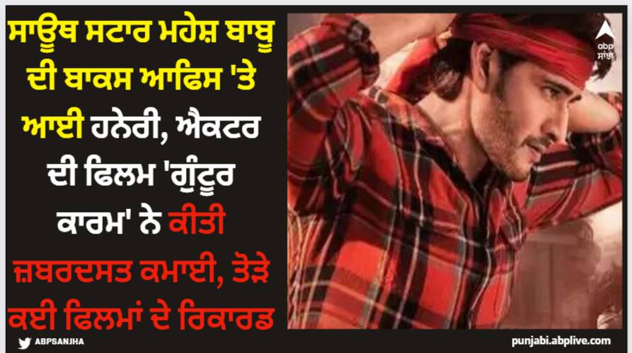 ਮਹੇਸ਼ ਬਾਬੂ ਨੇ ਆਪਣੀ ਹੀ ਫਿਲਮ ਦਾ ਤੋੜ ਦਿੱਤਾ ਰਿਕਾਰਡਮਹੇਸ਼ ਬਾਬੂ ਨੇ 'ਗੁੰਟੂਰ ਕਾਰਮ' ਦੇ ਵਿਸ਼ਵਵਿਆਪੀ ਸੰਗ੍ਰਹਿ ਨਾਲ ਆਪਣੀ 2022 ਦੀ ਫਿਲਮ 'ਸਰਕਾਰੂ ਵਾਰੀ ਪਾਤਾ' ਦਾ ਰਿਕਾਰਡ ਤੋੜ ਦਿੱਤਾ ਹੈ। ਤੁਹਾਨੂੰ ਦੱਸ ਦੇਈਏ ਕਿ ਇਸ ਫਿਲਮ ਨੇ ਦੁਨੀਆ ਭਰ ਵਿੱਚ 195.8 ਕਰੋੜ ਰੁਪਏ ਦਾ ਕਾਰੋਬਾਰ ਕੀਤਾ ਸੀ। ਇਸ ਫਿਲਮ ਤੋਂ ਬਾਅਦ ਇਹ ਅਦਾਕਾਰ ਕਾਫੀ ਸਮੇਂ ਤੱਕ ਪਰਦੇ ਤੋਂ ਦੂਰ ਸੀ ਅਤੇ 'ਗੁੰਟੂਰ ਕਾਰਮ' ਨਾਲ ਪਰਦੇ 'ਤੇ ਵਾਪਸੀ ਕੀਤੀ ਹੈ।