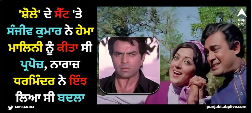 Dharmendra Angry With Sanjeev Kumar In Sholay: ਬਾਲੀਵੁੱਡ ਦੀ 'ਡ੍ਰੀਮ ਗਰਲ' ਹੇਮਾ ਮਾਲਿਨੀ ਬਾਲੀਵੁੱਡ ਦੀਆਂ ਉਨ੍ਹਾਂ ਅਭਿਨੇਤਰੀਆਂ 'ਚੋਂ ਇਕ ਹੈ, ਜਿਨ੍ਹਾਂ ਦੇ ਪਿਆਰ 'ਚ ਨਾ ਸਿਰਫ ਆਮ ਲੋਕ ਸਗੋਂ ਕਈ ਸਿਤਾਰੇ ਵੀ ਦੀਵਾਨੇ ਸਨ। ਪਰ, ਸਭ ਨੂੰ ਛੱਡ ਕੇ ਹੇਮਾ ਮਾਲਿਨੀ ਨੇ ਧਰਮਿੰਦਰ ਨੂੰ ਆਪਣਾ ਜੀਵਨ ਸਾਥੀ ਚੁਣਿਆ। ਦੋਵਾਂ ਦੀ ਜੋੜੀ ਅੱਜ ਵੀ ਇੰਡਸਟਰੀ ਦੀ ਸਭ ਤੋਂ ਮਸ਼ਹੂਰ ਜੋੜੀ ਵਿੱਚੋਂ ਇੱਕ ਹੈ। ਹੇਮਾ-ਧਰਮਿੰਦਰ ਦੀ ਜੋੜੀ ਸਿਰਫ ਪਰਦੇ ਤੋਂ ਬਾਹਰ ਹੀ ਨਹੀਂ ਬਲਕਿ ਪਰਦੇ 'ਤੇ ਵੀ ਹਿੱਟ ਹੈ। ਉਨ੍ਹਾਂ ਦੀ ਨਿੱਜੀ ਜ਼ਿੰਦਗੀ ਨਾਲ ਜੁੜਿਆ ਇਕ ਕਿੱਸਾ ਬਹੁਤ ਮਸ਼ਹੂਰ ਹੈ, ਜਿਸ ਬਾਰੇ ਅਸੀਂ ਤੁਹਾਨੂੰ ਦੱਸਣ ਜਾ ਰਹੇ ਹਾਂ।