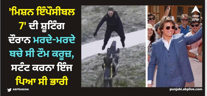 Tom Cruise Almost Died While Performing Stunt Scene For Mission Impossible 7: ਟੌਮ ਕਰੂਜ਼ ਹਾਲੀਵੁੱਡ ਦੇ ਟੌਪ ਕਲਾਕਾਰ ਹਨ। ਇਹੀ ਨਹੀਂ ਟੌਮ ਕਰੂਜ਼ ਪੂਰੀ ਦੁਨੀਆ 'ਚ ਸਭ ਤੋਂ ਵੱਧ ਫੀਸ ਲੈਣ ਵਾਲੇ ਐਕਟਰ ਹਨ। ਆਖਰ ਟੌਮ ਕਰੂਜ਼ ਸਭ ਤੋਂ ਵੱਧ ਫੀਸ ਲੈਣ ਵੀ ਕਿਉਂ ਨਾ। ਉਹ ਐਕਸ਼ਨ ਫਿਲਮਾਂ 'ਚ ਆਪਣੇ ਸਟੰਟ ਸੀਨ ਖੁਦ ਕਰਦੇ ਹਨ ਅਤੇ ਕਿਸੇ ਡੁਪਲੀਕੇਟ ਦੀ ਮਦਦ ਵੀ ਨਹੀਂ ਲੈਂਦੇ। ਅਸੀਂ ਸਭ ਨੇ ਉਨ੍ਹਾਂ ਨੂੰ ਫਿਲਮਾਂ 'ਚ ਖਤਰਨਾਕ ਸਟੰਟ ਸੀਨ ਕਰਦੇ ਹੋਏ ਦੇਖਿਆ ਹੈ।