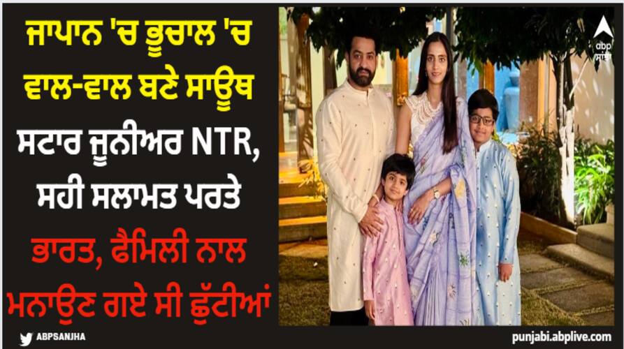 Japan Earthquake: 1 ਜਨਵਰੀ ਨੂੰ ਪੂਰੀ ਦੁਨੀਆ ਨਵੇਂ ਸਾਲ ਦੇ ਜਸ਼ਨਾਂ 'ਚ ਡੁੱਬੀ ਨਜ਼ਰ ਆਈ, ਉਥੇ ਹੀ ਜਾਪਾਨ 'ਚ ਤੇਜ਼ ਭੂਚਾਲ ਨੇ ਤਬਾਹੀ ਮਚਾਈ। ਫਿਲਹਾਲ ਜਾਪਾਨ ਹਾਈ ਅਲਰਟ 'ਤੇ ਹੈ। ਇਸ ਦੌਰਾਨ ਸਾਊਥ ਦੇ ਸੁਪਰਸਟਾਰ ਜੂਨੀਅਰ ਐਨਟੀਆਰ, ਜੋ ਆਪਣੇ ਪਰਿਵਾਰ ਨਾਲ ਛੁੱਟੀਆਂ ਮਨਾਉਣ ਲਈ ਜਾਪਾਨ ਗਏ ਸਨ। ਜੂਨੀਅਰ ਐਨਟੀਆਰ ਤੇ ਉਸ ਦਾ ਪਰਿਵਾਰ ਸੁਰੱਖਿਅਤ ਭਾਰਤ ਪਰਤ ਆਇਆ ਹੈ। ਜੀ ਹਾਂ, ਅਦਾਕਾਰ ਸੁਰੱਖਿਅਤ ਭਾਰਤ ਪਰਤ ਆਏ ਹਨ।