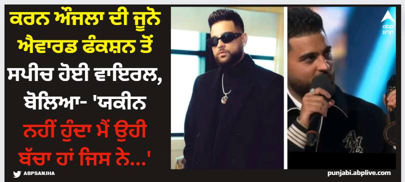Karan Aujla Speech At Juno Awards 2024: ਪੰਜਾਬੀ ਮਿਊਜ਼ਿਕ ਇੰਡਸਟਰੀ ਦਾ ਸੁਪਰਸਟਾਰ ਕਰਨ ਔਜਲਾ ਇੱਕ ਵਾਰ ਫਿਰ ਤੋਂ ਸੁਰਖੀਆਂ 'ਚ ਹੈ। ਗਾਇਕ ਨੇ ਕੈਨੇਡਾ 'ਚ ਜੂਨੋ ਐਵਾਰਡਜ਼ ਆਪਣੇ ਨਾਮ ਕਰ ਲਿਆ ਹੈ। ਉਸ ਨੂੰ ਫੈਨਜ਼ ਚੁਆਇਸ ਐਵਾਰਡ ਮਿਿਲਿਆ ਹੈ। ਇਸ ਦਰਮਿਆਨ ਜੂਨੋ ਐਵਾਰਡ ਫੰਕਸ਼ਨ ਤੋਂ ਕਰਨ ਔਜਲਾ ਦੀ ਸਪੀਚ ਕਾਫੀ ਵਾਇਰਲ ਹੋ ਰਹੀ ਹੈ। ਗਾਇਕ ਨੇ ਆਪਣੀ ਸਪੀਚ ਨਾਲ ਸਭ ਦਾ ਦਿਲ ਜਿੱਤ ਲਿਆ ਹੈ। ਆਓ ਤੁਹਾਨੂੰ ਦੱਸਦੇ ਹਾਂ ਗਾਇਕ ਨੇ ਕੀ ਬੋਲਿਆ।