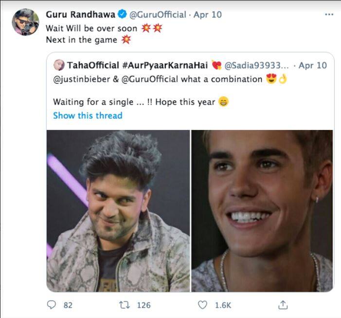 ਚੰਡੀਗੜ੍ਹ: ਗੁਰੂ ਰੰਧਾਵਾ ਨੇ ਇੱਕ ਟਵੀਟ ਨਾਲ ਸਭ ਨੂੰ ਹੈਰਾਨ ਕਰ ਦਿੱਤਾ ਹੈ ਜੋ ਉਨ੍ਹਾਂ ਦੀ ਫਿਊਚਰ ਦੀ ਪਲਾਨਿੰਗ ਵਾਲ ਇਸ਼ਾਰਾ ਕਰਦਾ ਹੈ। ਗੁਰੂ ਰੰਧਾਵਾ ਨੇ ਇਸ਼ਾਰਾ ਕੀਤਾ ਹੈ ਕਿ ਉਹ ਜਸਟਿਨ ਬੀਬਰ ਨਾਲ ਕੋਲੈਬੋਰੇਟ ਕਰ ਸਕਦੇ ਹਨ। ਇੱਕ ਟਵੀਟ ਵਿੱਚ ਜਦ ਕਿਸੇ ਨੇ ਲਿਖਿਆ ਕਿ ਜਸਟਿਨ ਨਾਲ ਗੁਰੂ ਕੌਂਬੀਨੇਸ਼ਨ ਕਮਾਲ ਦਾ ਹੋਏਗਾ ਤਾਂ ਗੁਰੂ ਨੇ ਕਿਹਾ ਕਿ ਇੰਤਜ਼ਾਰ ਜਲਦ ਹੀ ਖਤਮ ਹੋਏਗਾ।