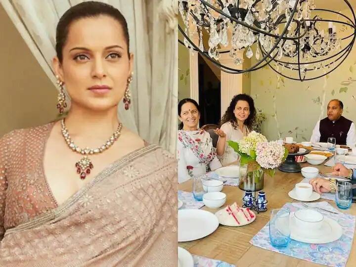 Kangana Ranaut Serves Himachali Food To CM Jai Ram Thakur: ਬਾਲੀਵੁੱਡ ਅਦਾਕਾਰਾ ਕੰਗਨਾ ਰਣੌਤ ਆਪਣੀ ਅਦਾਕਾਰੀ ਲਈ ਲੋਕਾਂ ਵਿੱਚ ਕਾਫ਼ੀ ਮਸ਼ਹੂਰ ਹੈ। ਇਸ ਦੇ ਨਾਲ ਹੀ ਉਹ ਅਕਸਰ ਆਪਣੇ ਬੇਬਾਕ ਬਿਆਨਾਂ ਨੂੰ ਲੈ ਕੇ ਸੁਰਖੀਆਂ 'ਚ ਰਹਿੰਦੀ ਹੈ। ਪਰ ਇਸ ਵਾਰ ਕੰਗਨਾ ਦੇ ਚਰਚਾ ਵਿਚ ਆਉਣ ਦਾ ਕਾਰਨ ਨਾ ਤਾਂ ਉਨ੍ਹਾਂ ਦੀਆਂ ਫਿਲਮਾਂ ਹਨ ਅਤੇ ਨਾ ਹੀ ਉਨ੍ਹਾਂ ਦਾ ਬਿਆਨ, ਸਗੋਂ ਉਨ੍ਹਾਂ ਦੀ ਹਿਮਾਚਲ ਪ੍ਰਦੇਸ਼ ਦੇ ਮੁੱਖ ਮੰਤਰੀ ਨਾਲ ਮੁਲਾਕਾਤ ਹੈ, ਜਿਸ ਕਾਰਨ ਸੋਸ਼ਲ ਮੀਡੀਆ 'ਤੇ ਲੋਕਾਂ ਵਿਚ ਸਿਆਸੀ ਚਰਚਾ ਸ਼ੁਰੂ ਹੋ ਗਈ ਹੈ।