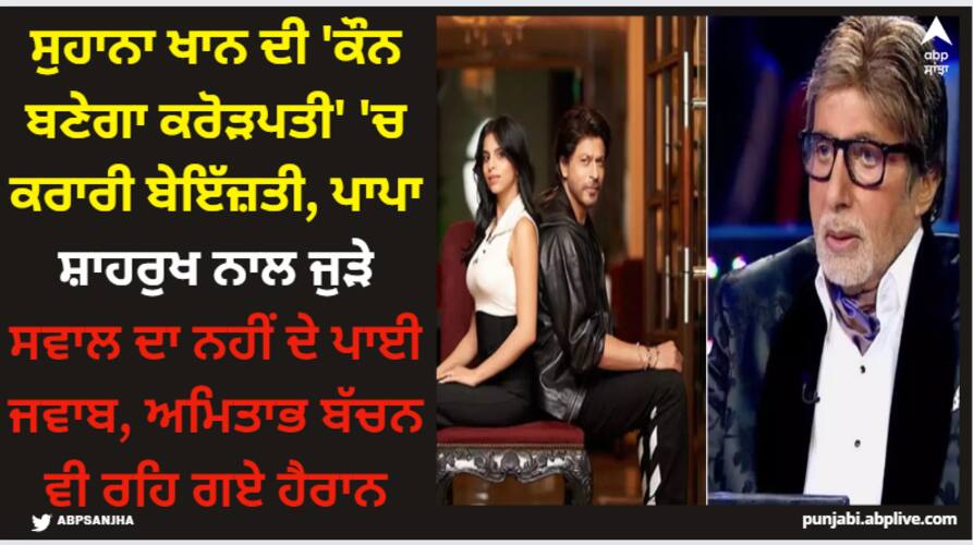 ਦਰਅਸਲ, ਸੁਹਾਨਾ ਖਾਨ ਨੂੰ ਅਮਿਤਾਭ ਬੱਚਨ ਨੇ ਕੁਈਜ਼ ਖੇਡਦਿਆਂ ਉਸ ਦੇ ਪਾਪਾ ਤੇ ਬਾਲੀਵੁੱਡ ਐਕਟਰ ਸ਼ਾਹਰੁਖ ਖਾਨ ਨਾਲ ਜੁੜਿਆ ਸਵਾਲ ਪੁੱਛਿਆ ਸੀ, ਜਿਸ ਦਾ ਜਵਾਬ ਸੁਹਾਨਾ ਨਹੀਂ ਦੇ ਸਕੀ। ਇਸ 'ਤੇ ਅਮਿਤਾਭ ਬੱਚਨ ਵੀ ਹੈਰਾਨ ਹੋ ਕੇ ਕਹਿੰਦੇ ਹਨ, 'ਬੇਟੀ ਨੂੰ ਹੀ ਨਹੀਂ ਪਤਾ'। ਸੁਹਾਨਾ ਦੀ ਇਸ ਹਰਕਤ ਦੀ ਹੁਣ ਖੂਬ ਚਰਚਾ ਹੋ ਰਹੀ ਹੈ।
