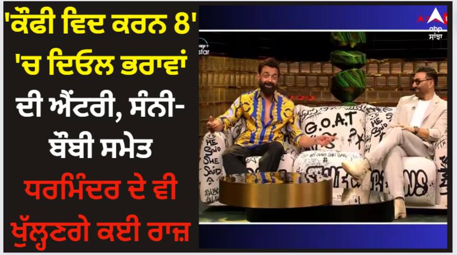 Koffee With Karan 8: ਕਰਨ ਜੌਹਰ ਦਾ ਮਸ਼ਹੂਰ ਟਾਕ ਸ਼ੋਅ 'ਕੌਫੀ ਵਿਦ ਕਰਨ 8' ਇਨ੍ਹੀਂ ਦਿਨੀਂ ਸੁਰਖੀਆਂ 'ਚ ਹੈ। ਦੀਪਿਕਾ ਪਾਦੂਕੋਣ ਅਤੇ ਰਣਵੀਰ ਸਿੰਘ ਇਸ ਸ਼ੋਅ ਦੇ ਪਹਿਲੇ ਮਹਿਮਾਨ ਬਣੇ। ਹੁਣ ਦੂਜੇ ਐਪੀਸੋਡ ਦੇ ਮਹਿਮਾਨਾਂ ਦੇ ਨਾਂ ਵੀ ਸਾਹਮਣੇ ਆਏ ਹਨ। ਦਿਓਲ ਭਰਾ ਕਰਨ ਜੌਹਰ ਦੇ ਸ਼ੋਅ ਦੇ ਦੂਜੇ ਐਪੀਸੋਡ ਦੇ ਮਹਿਮਾਨ ਬਣਨ ਜਾ ਰਹੇ ਹਨ। ਇਸ ਦਾ ਪ੍ਰੋਮੋ ਵੀਡੀਓ ਵੀ ਸਾਹਮਣੇ ਆਇਆ ਹੈ।