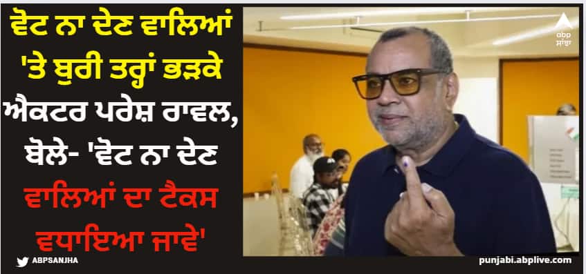 Paresh Rawal Angry: ਮਹਾਰਾਸ਼ਟਰ 'ਚ ਵੋਟਿੰਗ ਜਾਰੀ ਹੈ। ਜਿਸ 'ਚ ਬਾਲੀਵੁੱਡ ਸੈਲੇਬਸ ਉਤਸ਼ਾਹ ਨਾਲ ਹਿੱਸਾ ਲੈ ਰਹੇ ਹਨ। ਸੋਮਵਾਰ ਸਵੇਰ ਤੋਂ ਹੀ ਬਾਲੀਵੁੱਡ ਸਿਤਾਰੇ ਆਪਣੀ ਵੋਟ ਪਾਉਣ ਲਈ ਪੋਲਿੰਗ ਬੂਥ 'ਤੇ ਜਾ ਰਹੇ ਹਨ। ਵੋਟ ਪਾਉਣ ਤੋਂ ਬਾਅਦ ਉਸ ਦੀਆਂ ਤਸਵੀਰਾਂ ਅਤੇ ਵੀਡੀਓਜ਼ ਸੋਸ਼ਲ ਮੀਡੀਆ 'ਤੇ ਵਾਇਰਲ ਹੋ ਰਹੀਆਂ ਹਨ। ਦਿੱਗਜ ਬਾਲੀਵੁੱਡ ਅਭਿਨੇਤਾ ਪਰੇਸ਼ ਰਾਵਲ ਵੀ ਵੋਟ ਪਾਉਣ ਗਏ। ਵੋਟ ਪਾਉਣ ਤੋਂ ਬਾਅਦ ਉਨ੍ਹਾਂ ਮੀਡੀਆ ਨਾਲ ਗੱਲਬਾਤ ਕਰਦਿਆਂ ਉਨ੍ਹਾਂ ਲੋਕਾਂ 'ਤੇ ਆਪਣਾ ਗੁੱਸਾ ਜ਼ਾਹਰ ਕੀਤਾ ਜੋ ਵੋਟ ਨਹੀਂ ਪਾ ਰਹੇ ਹਨ।