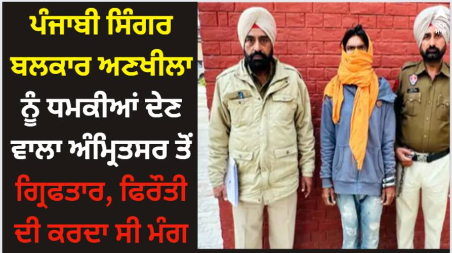 Punjabi Singer Balkar Ankheela: ਪੰਜਾਬੀ ਗਾਇਕ ਬਲਕਾਰ ਅਣਖੀਲਾ ਨੂੰ ਧਮਕੀਆਂ ਦੇਣ ਵਾਲੇ ਮੁਲਜ਼ਮ ਨੂੰ ਅੰਮ੍ਰਿਤਸਰ ਤੋਂ ਗ੍ਰਿਫ਼ਤਾਰ ਕਰ ਲਿਆ ਗਿਆ ਹੈ। ਦੋਸ਼ੀ ਗਾਇਕ ਤੋਂ ਫੋਨ ਕਰਕੇ ਫਿਰੌਤੀ ਦੀ ਮੰਗ ਕਰ ਰਿਹਾ ਸੀ। ਪੁੱਛਗਿੱਛ ਦੌਰਾਨ ਸਾਹਮਣੇ ਆਇਆ ਕਿ ਧਮਕੀ ਦੇਣ ਵਾਲਾ ਵਿਅਕਤੀ ਗਾਇਕਾ ਅਣਖੀਲਾ ਦਾ ਫੈਨ ਸੀ। ਉਸ ਦੀ ਪਛਾਣ ਮਹਿਤਾਬ ਸਿੰਘ ਵਜੋਂ ਹੋਈ ਹੈ। ਪੁਲਿਸ ਉਸ ਦੇ ਮੋਬਾਈਲ ਦੀ ਜਾਂਚ ਕਰ ਰਹੀ ਹੈ।
