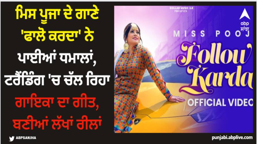 Miss Pooja Follow Karda Trending On Instagram: ਮਿਸ ਪੂਜਾ ਪੰਜਾਬੀ ਇੰਡਸਟਰੀ ਦੀਆਂ ਟੌਪ ਗਾਇਕਾਵਾਂ ਵਿੱਚੋਂ ਇੱਕ ਰਹੀ ਹੈ। ਉਸ ਦੇ ਗਾਏ ਗੀਤ ਅੱਜ ਵੀ ਵਿਆਹ ਸ਼ਾਦੀਆਂ ਦੇ ਫੰਕਸ਼ਨਾਂ ਦੀ ਸ਼ਾਨ ਹਨ। ਮਿਸ ਪੂਜਾ ਨੇ ਆਪਣੇ ਕਾਮਯਾਬ ਕਰੀਅਰ ਨੂੰ ਛੱਡ ਕੇ ਵਿਆਹ ਕਰ ਲਿਆ ਸੀ ਅਤੇ ਕੈਨੇਡਾ 'ਚ ਸੈਟਲ ਹੋ ਗਈ ਸੀ। ਉਸ ਤੋਂ ਕਈ ਸਾਲਾਂ ਬਾਅਦ ਮਿਸ ਪੂਜਾ ਨੇ ਮਿਊਜ਼ਿਕ ਇੰਡਸਟਰੀ 'ਚ ਵਾਪਸੀ ਕੀਤੀ ਹੈ।