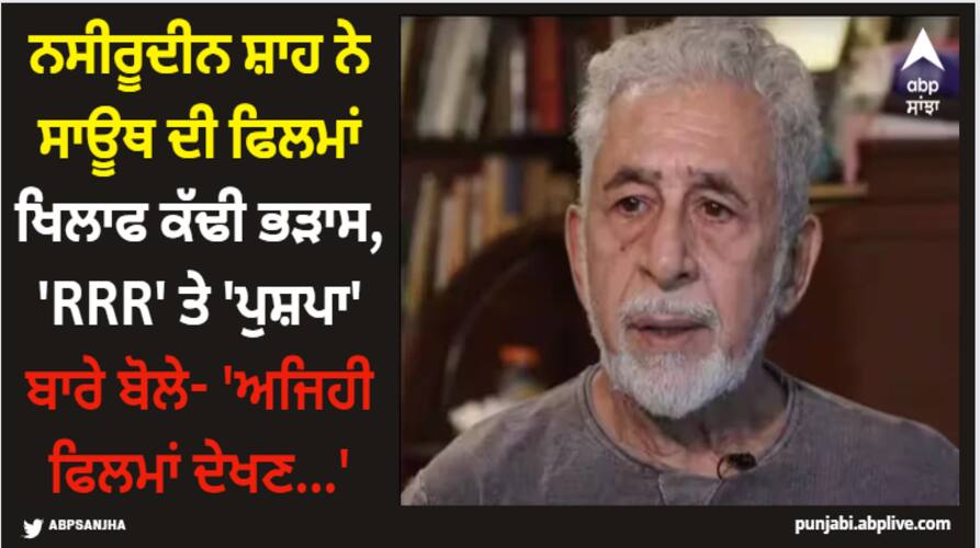 Naseeruddin Shah reviewed RRR: ਬਾਲੀਵੁੱਡ ਦੇ ਦਿੱਗਜ ਐਕਟਰ ਨਸੀਰੂਦੀਨ ਸ਼ਾਹ ਆਪਣੇ ਕਿਸੇ ਨਾ ਕਿਸੇ ਬਿਆਨ ਨੂੰ ਸੁਰਖੀਆਂ 'ਚ ਬਣੇ ਰਹਿੰਦੇ ਹਨ। ਉਹ ਫਿਲਮਾਂ ਬਾਰੇ ਆਪਣੇ ਵਿਚਾਰ ਸਾਂਝੇ ਕਰਦੇ ਰਹਿੰਦੇ ਹਨ। ਹਾਲ ਹੀ 'ਚ ਉਨ੍ਹਾਂ ਨੇ ਦੱਸਿਆ ਕਿ ਉਨ੍ਹਾਂ ਨੇ 'ਆਰਆਰਆਰ' ਅਤੇ 'ਪੁਸ਼ਪਾ' ਦੇਖਣ ਦੀ ਕੋਸ਼ਿਸ਼ ਕੀਤੀ ਸੀ, ਪਰ ਉਹ ਨਹੀਂ ਦੇਖ ਸਕੇ। ਹਾਲਾਂਕਿ ਉਨ੍ਹਾਂ ਨੇ ਮਣੀ ਰਤਨਮ ਦੀ ਤਾਰੀਫ ਕੀਤੀ ਅਤੇ ਦੱਸਿਆ ਕਿ ਉਨ੍ਹਾਂ ਨੇ ਉਨ੍ਹਾਂ ਦੀ ਫਿਲਮ ਦੇਖੀ ਹੈ। ਇਸ ਤੋਂ ਪਹਿਲਾਂ ਨਸੀਰੂਦੀਨ ਵੀ 'ਗਦਰ 2' ਨੂੰ ਲੈ ਕੇ ਆਪਣੀ ਰਾਏ ਦੇ ਚੁੱਕੇ ਹਨ।