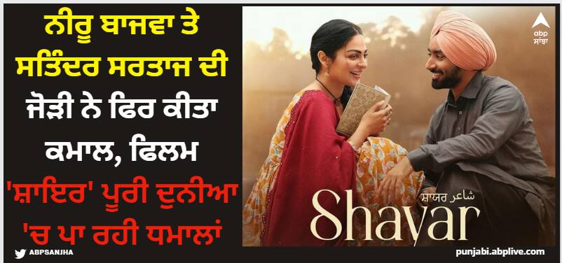 Neeru Bajwa Satinder Sartaaj Shayar: ਪੰਜਾਬੀ ਅਦਾਕਾਰਾ ਨੀਰੂ ਬਾਜਵਾ ਸੁਰਖੀਆਂ 'ਚ ਬਣੀ ਹੋਈ ਹੈ। ਅਦਾਕਾਰਾ ਦੀ ਨਵੀਂ ਫਿਲਮ 'ਸ਼ਾਇਰ' 19 ਅਪ੍ਰੈਲ ਨੂੰ ਰਿਲੀਜ਼ ਹੋਈ ਹੈ। ਰਿਲੀਜ਼ ਹੁੰਦੇ ਹੀ ਇਹ ਫਿਲਮ ਪੂਰੀ ਦੁਨੀਆ 'ਚ ਦਰਸ਼ਕਾਂ ਦਾ ਦਿਲ ਜਿੱਤ ਰਹੀ ਹੈ। ਮੂਵੀ ਰਿਿਵਿਊ ਮੁਤਾਬਕ ਜਿਸ ਨੇ ਵੀ ਇਸ ਫਿਲਮ ਨੂੰ ਦੇਖਿਆ ਉਹ ਬਿਨਾਂ ਰੋਏ ਥੀਏਟਰ 'ਚੋਂ ਬਾਹਰ ਨਹੀਂ ਆਇਆ।
