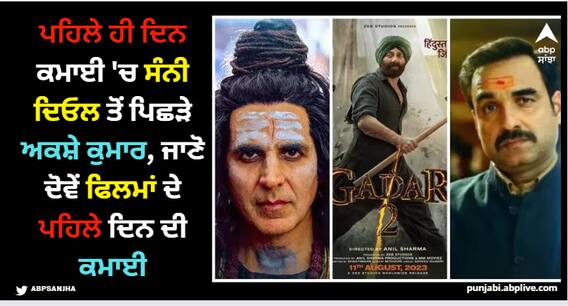 Gadar 2 VS OMG 2 First Day Box Office Collection: ਅਕਸ਼ੈ ਕੁਮਾਰ ਅਤੇ ਪੰਕਜ ਤ੍ਰਿਪਾਠੀ ਦੀ ਫਿਲਮ 'OMG 2' ਸਿਨੇਮਾਘਰਾਂ ਵਿੱਚ ਰਿਲੀਜ਼ ਹੋ ਚੁੱਕੀ ਹੈ ਅਤੇ ਦਰਸ਼ਕਾਂ ਦੁਆਰਾ ਇਸਨੂੰ ਪਸੰਦ ਕੀਤਾ ਜਾ ਰਿਹਾ ਹੈ। ਆਲੋਚਕਾਂ ਨੇ ਵੀ ਫਿਲਮ ਨੂੰ ਸ਼ਾਨਦਾਰ ਦੱਸਿਆ ਹੈ। 15 ਅਗਸਤ ਤੋਂ ਪਹਿਲਾਂ ਰਿਲੀਜ਼ ਹੋਣ ਵਾਲੀ ਇਸ ਫਿਲਮ ਦਾ ਬਾਕਸ ਆਫਿਸ 'ਤੇ ਸੰਨੀ ਦਿਓਲ ਦੀ 'ਗਦਰ 2' ਨਾਲ ਟੱਕਰ ਹੈ। ਪਹਿਲੇ ਦਿਨ ਦੀ ਕਮਾਈ ਦੇ ਅੰਕੜੇ ਸਾਹਮਣੇ ਹਨ ਅਤੇ ਇਹ ਅੰਕੜੇ 'OMG 2' ਦੇ ਸਿਤਾਰਿਆਂ ਅਤੇ ਨਿਰਮਾਤਾਵਾਂ ਲਈ ਕੋਈ ਰਾਹਤ ਨਹੀਂ ਹਨ।