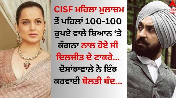 Diljit Dosanjh On Kangana Ranaut: ਬਾਲੀਵੁੱਡ ਅਦਾਕਾਰਾ ਕੰਗਨਾ ਰਣੌਤ ਇਨ੍ਹੀਂ ਦਿਨੀਂ ਲਗਾਤਾਰ ਸੁਰਖੀਆਂ ਵਿੱਚ ਬਣੀ ਹੋਈ ਹੈ। ਇਸਦੀ ਵਜ੍ਹਾ ਉਨ੍ਹਾਂ ਦੀ ਕੋਈ ਫਿਲਮ ਨਹੀਂ ਸਗੋਂ ਹਿਮਾਚਲ ਪ੍ਰਦੇਸ਼ ਦੀ ਮੰਡੀ ਲੋਕ ਸਭਾ ਸੀਟ ਤੋਂ ਸੰਸਦ ਮੈਂਬਰ ਚੁਣੇ ਜਾਣਾ ਅਤੇ ਸੀਆਈਐਸਐਫ ਮਹਿਲਾ ਜਵਾਨ ਕੁਲਵਿੰਦਰ ਕੌਰ ਵੱਲੋਂ 'ਥੱਪੜ' ਮਾਰਿਆ ਜਾਣਾ ਹੈ। ਦੱਸ ਦੇਈਏ ਕਿ ਕੰਗਨਾ ਨੂੰ 'ਥੱਪੜ' ਮਾਰੇ ਜਾਣ ਦੀ ਵਜ੍ਹਾ ਤਿੰਨ ਸਾਲ ਪਹਿਲਾਂ ਅਦਾਕਾਰਾ ਵੱਲੋਂ ਦਿੱਤਾ ਗਿਆ ਬਿਆਨ ਸੀ। ਜੋ ਕਿ ਇੱਕ ਵਾਰ ਫਿਰ ਸੁਰਖੀਆਂ ਵਿੱਚ ਆ ਗਿਆ ਹੈ। ਹਾਲਾਂਕਿ ਕੁਲਵਿੰਦਰ ਕੌਰ ਤੋਂ ਪਹਿਲਾਂ ਦਿਲਜੀਤ ਦੋਸਾਂਝ ਵੱਲੋਂ ਵੀ ਕੰਗਨਾ ਦੀ ਇਸੇ ਬਿਆਨ ਉੱਪਰ ਬੋਲਤੀ ਬੰਦ ਕੀਤੀ ਗਈ ਸੀ। ਆਖਿਰ ਕੀ ਸੀ ਉਹ ਬਿਆਨ ਇਸ ਖਬਰ ਰਾਹੀ ਵਿਸਤਾਰ ਨਾਲ ਪੜ੍ਹੋ...