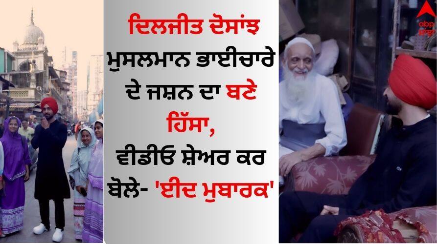 Diljit Dosanjh Wishes Fans For Eid: ਦੇਸ਼ ਭਰ 'ਚ ਮੁਸਲਿਮ ਭਾਈਚਾਰੇ ਵੱਲੋਂ ਅੱਜ ਈਦ ਮਨਾਈ ਜਾ ਰਹੀ ਹੈ। ਈਦ ਦਾ ਤਿਉਹਾਰ ਚੰਦ ਨੂੰ ਦੇਖ ਕੇ ਮਨਾਇਆ ਜਾਂਦਾ ਹੈ। ਇਸ ਮੌਕੇ ਫਿਲਮੀ ਸਿਤਾਰਿਆਂ ਵੱਲੋਂ ਵੀ ਪ੍ਰਸ਼ੰਸਕਾਂ ਨੂੰ ਖਾਸ ਤਰੀਕੇ ਨਾਲ ਵਧਾਈ ਦਿੱਤੀ ਜਾ ਰਹੀ ਹੈ। ਇਸ ਵਿਚਾਲੇ ਪੰਜਾਬੀ ਗਾਇਕ ਦਿਲਜੀਤ ਦੋਸਾਂਝ ਵੱਲੋਂ ਵੀ ਪ੍ਰਸ਼ੰਸਕਾਂ ਨੂੰ ਈਦ ਦੀ ਖਾਸ ਤਰੀਕੇ ਨਾਲ ਵਧਾਈ ਦਿੱਤੀ ਗਈ ਹੈ। ਦਰਅਸਲ, ਦੋਸਾਂਝਾਵਾਲੇ ਵੱਲੋਂ ਆਪਣੇ ਸੋਸ਼ਲ ਮੀਡੀਆ ਹੈਂਡਲ ਉੱਪਰ ਇੱਕ ਖਾਸ ਵੀਡੀਓ ਸ਼ੇਅਰ ਕੀਤਾ ਗਿਆ ਹੈ, ਜਿਸ ਵਿੱਚ ਉਹ ਈਦ ਮੌਕੇ ਵਧਾਈ ਦਿੰਦੇ ਹੋਏ ਵਿਖਾਈ ਦੇ ਰਹੇ ਹਨ।