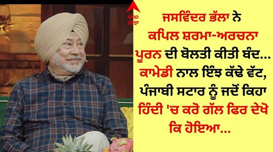 Jaswinder Bhalla On the Kapil Sharma Show: ਪੰਜਾਬੀ ਸਿਨੇਮਾ ਜਗਤ ਦੇ ਮਸ਼ਹੂਰ ਕਾਮੇਡੀਅਨ ਜਸਵਿੰਦਰ ਭੱਲਾ ਕਿਸੇ ਪਛਾਣ ਦੇ ਮੋਹਤਾਜ ਨਹੀਂ ਹਨ। ਉਨ੍ਹਾਂ ਆਪਣੀ ਕਾਮੇਡੀ ਨਾਲ ਦੇਸ਼ ਅਤੇ ਵਿਦੇਸ਼ ਬੈਠੇ ਪੰਜਾਬੀਆਂ ਦਾ ਰੱਜ ਕੇ ਮਨੋਰੰਜਨ ਕੀਤਾ ਹੈ। ਖਾਸ ਗੱਲ਼ ਇਹ ਹੈ ਕਿ 63 ਸਾਲ ਦੀ ਉਮਰ 'ਚ ਵੀ ਪੂਰੀ ਤਰ੍ਹਾਂ ਐਕਟਿਵ ਹਨ। ਉਹ ਨਾ ਸਿਰਫ ਫਿਲਮਾਂ 'ਚ ਦਰਸ਼ਕਾਂ ਦਾ ਮਨੋਰੰਜਨ ਕਰਦੇ ਹਨ, ਬਲਕਿ ਸੋਸ਼ਲ ਮੀਡੀਆ 'ਤੇ ਵੀ ਫੈਨਜ਼ ਨੂੰ ਹਸਾਉਂਦੇ ਰਹਿੰਦੇ ਹਨ। ਹਾਲ ਹੀ ਵਿੱਚ ਜਸਵਿੰਦਰ ਭੱਲਾ ਕਾਮੇਡੀਅਨ ਕਪਿਲ ਸ਼ਰਮਾ ਦੇ ਸ਼ੋਅ ਦ ਕਪਿਲ ਸ਼ਰਮਾ ਦਾ ਹਿੱਸਾ ਬਣੇ। ਇਸ ਦੌਰਾਨ ਉਨ੍ਹਾਂ ਦੇ ਨਾਲ ਫਿਲਮ ਦੀ ਪੂਰੀ ਸਟਾਰ ਕਾਸਟ ਨਜ਼ਰ ਆਈ। ਹਾਲਾਂਕਿ ਇਸ ਦੌਰਾਨ ਜਸਵਿੰਦਰ ਭੱਲਾ ਨੇ ਕੁਝ ਅਜਿਹਾ ਕਿਹਾ ਜਿਸ ਨਾਲ ਕਪਿਲ ਸ਼ਰਮਾ ਦੇ ਨਾਲ-ਨਾਲ ਅਰਚਨਾ ਪੂਰਨ ਸਿੰਘ ਦੀ ਬੋਲਤੀ ਬੰਦ ਹੋ ਗਈ।