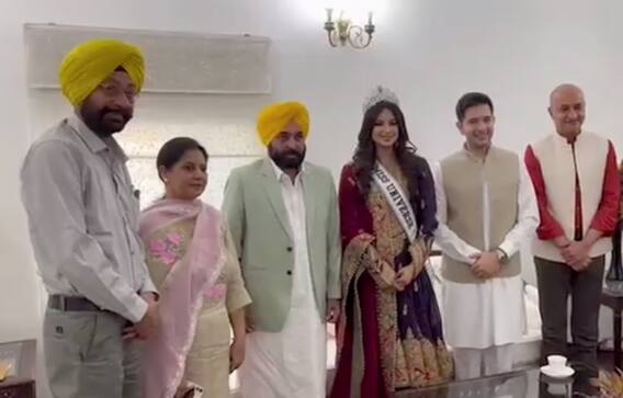 Harnaaz Kaur Sandhu meet Bhagwant Mann: ਮਿਸ ਯੂਨੀਵਰਸ ਹਰਨਾਜ਼ ਕੌਰ ਸੰਧੂ ਨੇ ਬੁੱਧਵਾਰ ਨੂੰ ਪੰਜਾਬ ਦੇ ਮੁੱਖ ਮੰਤਰੀ ਭਗਵੰਤ ਮਾਨ ਨਾਲ ਉਨ੍ਹਾਂ ਦੀ ਸਰਕਾਰੀ ਰਿਹਾਇਸ਼ 'ਤੇ ਮੁਲਾਕਾਤ ਕੀਤੀ। ਇਸ ਦੌਰਾਨ ਮੁੱਖ ਮੰਤਰੀ ਨੇ 21 ਸਾਲਾਂ ਬਾਅਦ ਭਾਰਤ ਵਿੱਚ ਮਿਸ ਯੂਨੀਵਰਸ ਦਾ ਖਿਤਾਬ ਵਾਪਸ ਲਿਆ ਕੇ ਦੇਸ਼ ਦਾ ਮਾਣ ਵਧਾਉਣ ਲਈ ਉਨ੍ਹਾਂ ਨੂੰ ਵਧਾਈ ਦਿੱਤੀ।