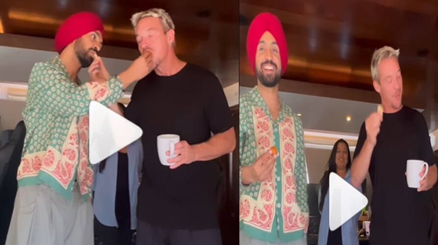 Diljit Dosanjh having fun with American DJ Diplo: ਪੰਜਾਬੀਆਂ ਦੀ ਸ਼ਾਨ ਦਿਲਜੀਤ ਦੋਸਾਂਝ ਲਗਾਤਾਰ ਚਰਚਾ ਵਿੱਚ ਹਨ। ਇਨ੍ਹੀਂ ਦਿਨੀਂ ਕਲਾਕਾਰ ਆਪਣੀ ਫਿਲਮ ਜੋੜੀ ਦੇ ਨਾਲ-ਨਾਲ ਕੋਚੈਲਾ ਪਰਫਾਰਮ ਨੂੰ ਲੈ ਦੁਨੀਆ ਭਰ ਵਿੱਚ ਛਾਏ ਹੋਏ ਹਨ। ਦਰਅਸਲ, ਹਾਲ ਹੀ ਵਿੱਚ ਦਿਲਜੀਤ ਕੋਚੈਲਾ ਵੈਲੀ ਸੰਗੀਤ ਅਤੇ ਕਲਾ ਉਤਸਵ ਦਾ ਹਿੱਸਾ ਬਣੇ। ਇਸ ਦੌਰਾਨ ਕਲਾਕਾਰ ਨੇ ਆਪਣੇ ਗੀਤਾਂ ਦੀ ਬੀਟਸ ਨਾਲ ਨਾ ਸਿਰਫ ਪੰਜਾਬੀਆਂ ਸਗੋਂ ਵਿਦੇਸ਼ੀਆਂ ਨੂੰ ਵੀ ਨੱਚਣ ਲਗਾ ਦਿੱਤਾ। ਦਿਲਜੀਤ ਦੀ ਇਸ ਪ੍ਰਸਿੱਧੀ ਦੀ ਪਾਲੀਵੁੱਡ, ਬਾਲੀਵੁੱਡ ਦੇ ਨਾਲ-ਨਾਲ ਹਾਲੀਵੁੱਡ ਸਿਤਾਰਿਆਂ ਨੇ ਵੀ ਪ੍ਰਸ਼ੰਸ਼ਾ ਕੀਤੀ। ਇਸ ਵਿਚਕਾਰ ਅਮੂਲ ਇੰਡਿਆ ਨੇ ਵੀ ਦਿਲਜੀਤ ਦੀ ਸਫਲਤਾ ਦਾ ਖਾਸ ਤਰੀਕੇ ਨਾਲ ਜਸ਼ਨ ਮਨਾਇਆ। ਇਸ ਵਿਚਕਾਰ ਦੋਸਾਂਝਾਵਾਲਾ ਅਮਰੀਕੀ ਡੀਜੇ ਡਿਪਲੋ ਨਾਲ ਮਸਤੀ ਕਰਦੇ ਹੋਏ ਦਿਖਾਈ ਦੇ ਰਿਹਾ ਹੈ। ਜਿਸਦਾ ਵੀਡੀਓ ਉਨ੍ਹਾਂ ਆਪਣੇ ਸੋਸ਼ਲ ਮੀਡੀਆ ਅਕਾਊਂਟ ਉੱਪਰ ਸਾਂਝਾ ਕੀਤਾ ਹੈ। ਤੁਸੀ ਵੀ ਵੇਖੋ ਇਹ ਵੀਡੀਓ...