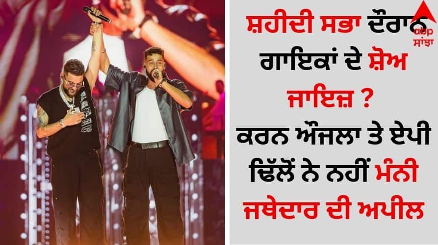 Karan Aujla and AP Dhillon Show: ਦੁਨੀਆ ਭਰ ਦੇ ਸਿੱਖਾਂ ਵੱਲੋਂ ਇਤਿਹਾਸ ਦੀ ਮਹਾਨ ਸ਼ਹਾਦਤ ਨੂੰ ਸਮਰਪਿਤ ਸ਼ਹੀਦੀ ਪੰਦਰਵਾੜਾ (15 ਤੋਂ 31 ਦਸੰਬਰ) ਮਨਾਇਆ ਜਾ ਰਿਹਾ ਹੈ। ਇਸ ਲਈ ਸ੍ਰੀ ਅਕਾਲ ਤਖਤ ਸਾਹਿਬ ਦੇ ਜਥੇਦਾਰ ਗਿਆਨੀ ਰਘਬੀਰ ਸਿੰਘ ਨੇ ਸਿੱਖ ਕੌਮ ਨੂੰ ਅਪੀਲ ਕੀਤੀ ਸੀ ਕਿ ਖੁਸ਼ੀ ਦੇ ਸਮਾਗਮਾਂ ਵਿੱਚ ਗਾਉਣ-ਵਜਾਉਣ ਤੋਂ ਗੁਰੇਜ ਕੀਤਾ ਜਾਏ। ਦੂਜੇ ਪਾਸੇ ਪੰਜਾਬੀ ਗਾਇਕ ਕਰਨ ਔਜਲਾ ਤੇ ਏਪੀ ਢਿੱਲੋਂ ਇਨ੍ਹਾਂ ਦਿਨਾਂ ਦੌਰਾਨ ਲਾਈਵ ਸ਼ੋਅ ਕਰ ਰਹੇ ਹਨ। ਇਸ ਲਈ ਸਵਾਲ ਖੜ੍ਹੇ ਹੋ ਰਹੇ ਹਨ। ਪਤਾ ਲੱਗਾ ਹੈ ਕਿ ਦਿਲਜੀਤ ਦੋਸਾਂਝ ਨੇ ਸ਼ਹੀਦੀ ਸਭਾ ਕਰਕੇ ਆਪਣੇ ਸ਼ੋਅ ਨੂੰ ਬ੍ਰੇਕ ਦਿੱਤੀ ਹੈ।