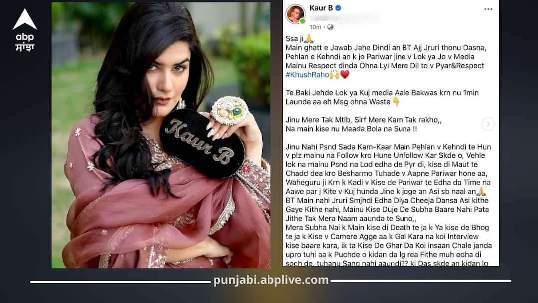 ਉਨ੍ਹਾਂ ਪੋਸਟ ਵਿੱਚ ਕਿਹਾ: "ਮੌਤ ਤਾਂ ਛੱਡੋ, ਬੇਸ਼ਰਮੋ, ਤੁਹਾਡੇ ਵੀ ਪਰਿਵਾਰ ਹੋਣਗੇ। ਵਾਹਿਗੁਰੂ ਕਰੇ ਕਿ ਕਿਸੇ ਦੇ ਵੀ ਪਰਿਵਾਰ 'ਤੇ ਇਸ ਤਰ੍ਹਾਂ ਦਾ ਸਮਾਂ ਨਾ ਆਵੇ।" ਇਸ ਪੋਸਟ ਚ ਗਾਇਕਾ ਨੇ ਦੁੱਖ ਨੂੰ ਬਿਆਨ ਕੀਤਾ ਹੈ। ਕੌਰ ਬੀ ਦੀ ਇਹ ਪੋਸਟ ਸੋਸ਼ਲ ਮੀਡੀਆ 'ਤੇ ਤੇਜ਼ੀ ਨਾਲ ਵਾਇਰਲ ਹੋ ਰਹੀ ਹੈ ਅਤੇ ਫੈਨਜ਼ ਉਨ੍ਹਾਂ ਦੀਆਂ ਭਾਵਨਾਵਾਂ ਨਾਲ ਸਹਾਨੁਭੂਤੀ ਜਤਾਈ ਰਹੇ ਹਨ। ਇਸ ਤੋਂ ਇਲਾਵਾ ਉਨ੍ਹਾਂ ਨੇ ਆਪਣੇ ਫੈਨਜ਼ ਦਾ ਧੰਨਵਾਦ ਵੀ ਕੀਤਾ ਹੈ, ਜੋਕਿ ਗਾਇਕਾ ਦੇ ਹੱਕ ਵਿੱਚ ਖੜ੍ਹੇ ਹਨ।