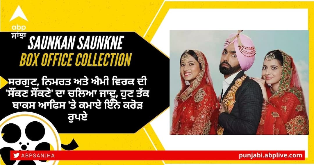 Saunkan Saunkne Collection: ਇਸ ਸਮੇਂ ਫਿਲਮਾਂ ਨੇ ਸਿਨੇਮਾਘਰਾਂ ਨੂੰ ਹਿਲਾ ਦਿੱਤਾ ਹੈ। ਦੱਖਣ ਤੋਂ ਲੈ ਕੇ ਪੰਜਾਬੀ, ਹਿੰਦੀ ਤੱਕ ਹਰ ਇੰਡਸਟਰੀ ਵਿੱਚ ਫੈਨਸ ਨੂੰ ਐਂਟਰਟੇਨਮੈਂਟ ਦੀ ਡੋਜ਼ ਮਿਲ ਰਹੀ ਹੈ। ਦੱਖਣ ਦੇ ਨਾਲ-ਨਾਲ ਪੰਜਾਬੀ ਇੰਡਸਟਰੀ ਵੀ ਹਰ ਪਾਸੇ ਛਾਈ ਹੋਈ ਹੈ। ਸਰਗੁਣ ਮਹਿਤਾ ਅਤੇ ਐਮੀ ਵਿਰਕ ਪੰਜਾਬੀ ਇੰਡਸਟਰੀ 'ਤੇ ਹਾਵੀ ਹਨ। ਜਦੋਂ ਵੀ ਦੋਵੇਂ ਇਕੱਠੇ ਹੁੰਦੇ ਹਨ ਤਾਂ ਹੰਗਾਮਾ ਮਚਾ ਦਿੰਦੇ ਹਨ। ਕਿਸਮਤ 2 ਤੋਂ ਬਾਅਦ ਦੋਵੇਂ ਇੱਕ ਵਾਰ ਫਿਰ ਇਕੱਠੇ ਨਜ਼ਰ ਆਏ ਹਨ। ਉਨ੍ਹਾਂ ਦੀ ਫਿਲਮ ਸੌਂਕਣ ਸੌਂਕਨੇ ਰਿਲੀਜ਼ ਹੋ ਚੁੱਕੀ ਹੈ।