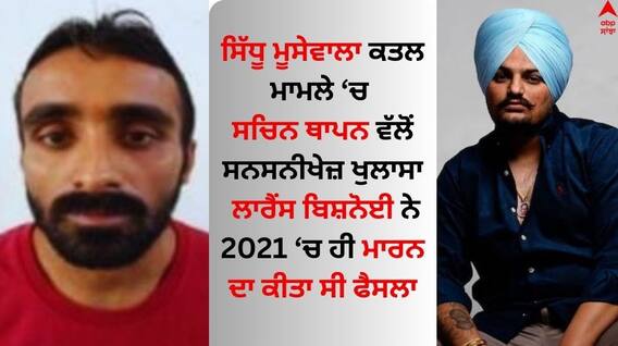 Sachin Thapan on Sidhu Moose Wala: ਪੰਜਾਬੀ ਗਾਇਕ ਸਿੱਧੂ ਮੂਸੇਵਾਲਾ ਦੇ ਕਲਤ ਮਾਮਲੇ ਵਿੱਚ ਆਏ ਦਿਨ ਵੱਡੇ ਖੁਲਾਸੇ ਹੋ ਰਹੇ ਹਨ। ਇਸ ਵਿਚਾਲੇ ਹੁਣ ਕਲਾਕਾਰ ਦੇ ਕਤਲ ਦੀ ਸਾਜ਼ਿਸ਼ ਰਚਣ ਵਾਲੇ ਗੈਂਗਸਟਰ ਲਾਰੈਂਸ ਬਿਸ਼ਨੋਈ ਦੇ ਰਿਸ਼ਤੇਦਾਰ ਸਚਿਨ ਥਾਪਨ ਨੇ ਇੱਕ ਹੋਰ ਵੱਡਾ ਖੁਲਾਸਾ ਕੀਤਾ ਹੈ। ਜਿਸ ਨੂੰ ਸੁਣ ਹਰ ਕੋਈ ਹੈਰਾਨ ਹੈ। ਦਰਅਸਲ, ਹੁਣ ਸਚਿਨ ਥਾਪਨ ਨੇ ਖੁਲਾਸਾ ਕੀਤਾ ਹੈ ਕਿ ਲਾਰੈਂਸ ਬਿਸ਼ਨੋਈ ਨੇ ਸਾਲ 2021 ਵਿੱਚ ਸਿੱਧੂ ਮੂਸੇਵਾਲਾ ਦਾ ਕਤਲ ਕਰਨ ਦਾ ਫੈਸਲਾ ਕਰ ਲਿਆ ਸੀ।