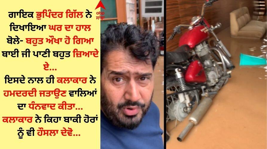 Bhupinder Gill house was also flooded: ਪੰਜਾਬ 'ਚ ਲਗਾਤਾਰ ਪੈ ਰਹੇ ਮੀਂਹ ਕਾਰਨ ਹਾਲਾਤ ਚਿੰਤਾਜਨਕ ਬਣੇ ਹੋਏ ਹਨ। ਦਰਅਸਲ, ਪਿਛਲੇ ਕੁਝ ਦਿਨਾਂ ਤੋਂ ਪੈ ਰਹੇ ਮੀਂਹ ਕਰਕੇ ਪੰਜਾਬ 'ਚ ਹੜ੍ਹ ਕਾਰਨ ਜਲ-ਥਲ ਦੀ ਸਥਿਤੀ ਬਣੀ ਹੋਈ ਹੈ। ਅਜਿਹੇ 'ਚ ਪੰਜਾਬ ਦੇ ਕਈ ਜ਼ਿਲ੍ਹੇ ਪਾਣੀ 'ਚ ਡੁੱਬੇ ਨਜ਼ਰ ਆਏ। ਇਨ੍ਹਾਂ ਹਾਲਾਤ ਨੂੰ ਦੇਖਦੇ ਹੋਏ ਪੰਜਾਬੀ ਸਿਨੇਮਾ ਜਗਤ ਨਾਲ ਜੁੜੇ ਸਿਤਾਰਿਆਂ ਨੇ ਚਿੰਤਾ ਜਤਾਉਂਦੇ ਹੋਏ ਪੋਸਟ ਸਾਂਝੀ ਕੀਤੀ ਹੈ।