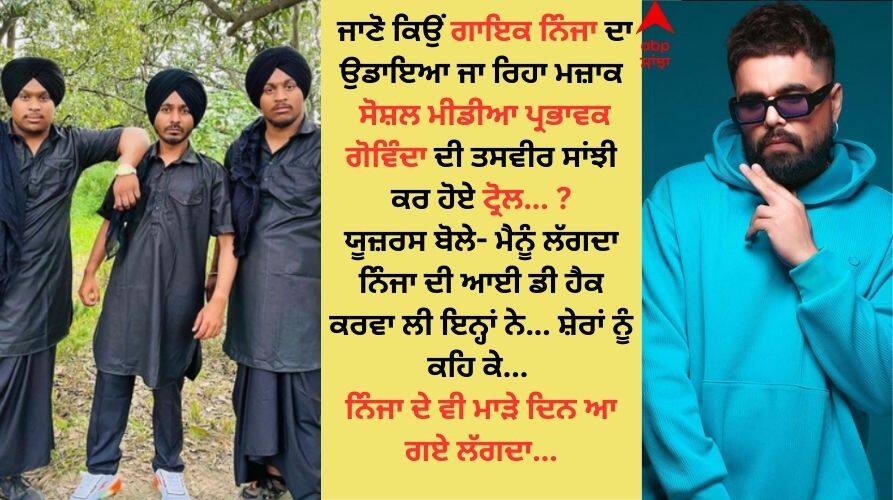 ਦਰਅਸਲ, ਪੰਜਾਬੀ ਗਾਇਕ ਨਿੰਜਾ ਵੱਲੋਂ ਸੋਸ਼ਲ ਮੀਡੀਆ ਪ੍ਰਭਾਵਕ ਗੋਵਿੰਦਾ ਸਣੇ ਉਸਦੇ ਦੋ ਹੋਰ ਸਾਥੀਆਂ ਦੀਆਂ ਤਸਵੀਰਾਂ ਸ਼ੇਅਰ ਕੀਤੀਆਂ ਗਈਆਂ ਹਨ। ਜਿਨ੍ਹਾਂ ਨੂੰ ਲੈ ਨਿੰਜਾ ਨੂੰ ਜੰਮ ਕੇ ਟ੍ਰੋਲ ਕੀਤਾ ਜਾ ਰਿਹਾ ਹੈ। ਆਖਿਰ ਕੀ ਹੈ ਇਸਦਾ ਕਾਰਨ ? ਕਿਉਂ ਪੰਜਾਬੀ ਗਾਇਕ ਨਿੰਜਾ ਹੋਏ ਟ੍ਰੋਲਿੰਗ ਦਾ ਸ਼ਿਕਾਰ ਆਓ ਜਾਣੋ...