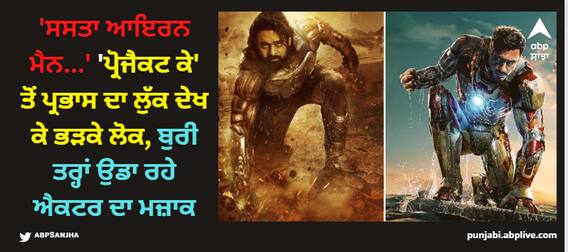 Prabhas Trolled: ਪੈਨ ਇੰਡੀਆ ਸਟਾਰ ਪ੍ਰਭਾਸ ਦੀਆਂ ਫਿਲਮਾਂ ਇਕ ਤੋਂ ਬਾਅਦ ਇੱਕ ਫਲਾਪ ਹੋ ਰਹੀਆਂ ਹਨ। ਲੋਕ ਉਸ ਦੀ ਐਕਟਿੰਗ ਨੂੰ ਵੀ ਜ਼ਿਆਦਾ ਪਸੰਦ ਨਹੀਂ ਕਰ ਰਹੇ ਹਨ। ਪ੍ਰਭਾਸ ਇਨ੍ਹੀਂ ਦਿਨੀਂ ਆਪਣੀ ਆਉਣ ਵਾਲੀ ਫਿਲਮ 'ਪ੍ਰੋਜੈਕਟ ਕੇ' ਨੂੰ ਲੈ ਕੇ ਸੁਰਖੀਆਂ 'ਚ ਹੈ। ਹਾਲ ਹੀ 'ਚ ਇਸ ਫਿਲਮ ਦੀ ਸਟਾਰਕਾਸਟ ਦਾ ਐਲਾਨ ਕੀਤਾ ਗਿਆ ਹੈ ਅਤੇ ਬੁੱਧਵਾਰ ਨੂੰ ਇਸ ਫਿਲਮ ਤੋਂ ਪ੍ਰਭਾਸ ਦਾ ਲੁੱਕ ਸਾਹਮਣੇ ਆਇਆ ਹੈ। ਪ੍ਰਭਾਸ ਦੀ ਇਸ ਲੁੱਕ ਨੂੰ ਲੋਕ ਪਸੰਦ ਨਹੀਂ ਕਰ ਰਹੇ ਹਨ, ਜਿਸ ਤੋਂ ਬਾਅਦ ਉਹ ਸੋਸ਼ਲ ਮੀਡੀਆ 'ਤੇ ਟ੍ਰੋਲ ਹੋ ਰਹੇ ਹਨ। ਉਸ ਦੇ ਲੁੱਕ ਦੀ ਤੁਲਨਾ ਆਇਰਨਮੈਨ ਨਾਲ ਕੀਤੀ ਜਾ ਰਹੀ ਹੈ।