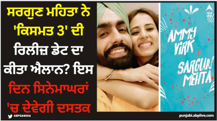 Sargun Mehta Announces Qismat 3 Release Date: ਸਰਗੁਣ ਮਹਿਤਾ ਅਕਸਰ ਹੀ ਸੁਰਖੀਆਂ 'ਚ ਬਣੀ ਰਹਿੰਦੀ ਹੈ। ਸਰਗੁਣ ਨੇ ਹਾਲ ਹੀ 'ਚ ਆਪਣੇ ਪਤੀ ਰਵੀ ਦੂਬੇ ਦੇ ਨਾਲ ਵਿਆਹ ਦੀ 10ਵੀਂ ਵਰ੍ਹੇਗੰਢ ਮਨਾਈ ਹੈ। ਇਸ ਖਾਸ ਮੌਕੇ 'ਤੇ ਉਹ ਰਵੀ ਨਾਲ ਲੰਡਨ 'ਚ ਛੁੱਟੀਆਂ ਮਨਾਉਣ ਲਈ ਗਈ ਸੀ। ਇਸ ਤੋਂ ਇਲਾਵਾ ਜਦੋਂ ਤੋਂ ਸਰਗੁਣ ਨੇ 'ਕਿਸਮਤ 3' ਫਿਲਮ ਦਾ ਐਲਾਨ ਕੀਤਾ ਹੈ, ਉਦੋਂ ਤੋਂ ਹੀ ਫੈਨਜ਼ ਫਿਲਮ ਦੀ ਰਿਲੀਜ਼ ਡੇਟ ਨੂੰ ਜਾਨਣ ਲਈ ਬੇਤਾਬ ਸਨ।