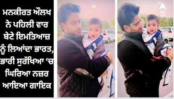 Mankirt Aulkh Brings His Son To India: ਪੰਜਾਬੀ ਗਾਇਕ ਮਨਕੀਰਤ ਔਲਖ (Mankirt Aulakh) ਆਏ ਦਿਨ ਸੁਰਖੀਆਂ ਦਾ ਵਿਸ਼ਾ ਬਣੇ ਰਹਿੰਦੇ ਹਨ। ਉਹ ਆਪਣੀ ਨਿੱਜੀ ਅਤੇ ਪ੍ਰੋਫੈਸ਼ਨਲ ਜ਼ਿੰਦਗੀ ਦੇ ਚੱਲਦੇ ਸੁਰਖੀਆਂ ਵਿੱਚ ਰਹਿੰਦੇ ਹਨ। ਦੱਸ ਦੇਈਏ ਕਿ ਕਲਾਕਾਰ ਨੇ ਆਪਣੇ ਪੁੱਤਰ ਇਮਤਿਆਜ਼ ਸਿੰਘ ਔਲਖ (Imtiyaz Singh Aulakh) ਦਾ ਭਾਰਤ ਵਿੱਚ ਸੁਵਾਗਤ ਕੀਤਾ ਹੈ। ਜਿਸਦਾਂ ਕਿਊਟ ਵੀਡੀਓ ਕਲਾਕਾਰ ਵੱਲੋਂ ਆਪਣੇ ਸੋਸ਼ਲ ਮੀਡੀਆ ਅਕਾਊਂਟ ਉੱਪਰ ਸ਼ੇਅਰ ਕੀਤਾ ਗਿਆ ਹੈ।
