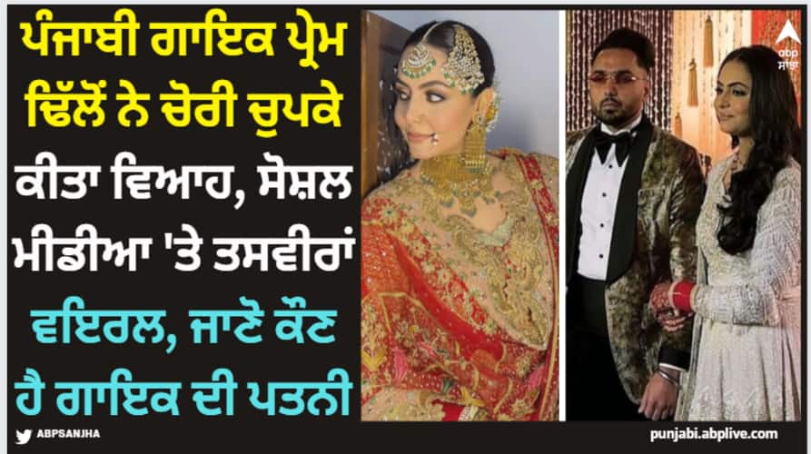 Prem Dhillon Marriage: ਪੰਜਾਬੀ ਗਾਇਕ ਪ੍ਰੇਮ ਢਿੱਲੋਂ ਇੰਨੀਂ ਦਿਨੀਂ ਖੂਬ ਸੁਰਖੀਆਂ ਬਟੋਰ ਰਿਹਾ ਹੈ। ਦਰਅਸਲ, ਗਾਇਕ ਨੇ ਚੋਰੀ ਚੁਪਕੇ ਵਿਆਹ ਕਰਵਾ ਲਿਆ ਹੈ। ਜਿਸ ਦੀਆਂ ਤਸਵੀਰਾਂ ਹੁਣ ਸੋਸ਼ਲ ਮੀਡੀਆ 'ਤੇ ਅੱਗ ਵਾਂਗ ਵਾਇਰਲ ਹੋ ਰਹੀਆਂ ਹਨ। ਦੱਸਿਆ ਜਾ ਰਿਹਾ ਹੈ ਕਿ ਪ੍ਰੇਮ ਢਿੱਲੋਂ ਨੇ ਆਪਣੀ ਪ੍ਰੇਮਿਕਾ ਹਰਮਨ ਰਾਏ ਨਾਲ 18 ਜਨਵਰੀ ਨੂੰ ਵਿਆਹ ਕਰਵਾਇਆ ਸੀ। ਸੋਸ਼ਲ ਮੀਡੀਆ 'ਤੇ ਗਾਇਕ ਦੀ ਪਤਨੀ ਦੀਆਂ ਤਸਵੀਰਾਂ ਤੇ ਵੀਡੀਓਜ਼ ਕਾਫੀ ਵਾਇਰਲ ਹੋ ਰਹੇ ਹਨ। ਦੱਸ ਦਈਏ ਕਿ ਇਹ ਜੋ ਤਸਵੀਰ ਹੈ ਉਹ ਗਾਇਕ ਦੇ ਵਿਆਹ ਦੀ ਰਿਸੈਪਸ਼ਨ ਪਾਰਟੀ ਦੀ ਹੈ। ਦੇਖੋ ਇਹ ਤਸਵੀਰ: