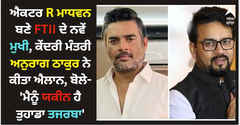 ਆਈਬੀ ਮੰਤਰੀ ਅਨੁਰਾਗ ਠਾਕੁਰ ਨੇ ਟਵਿੱਟਰ 'ਤੇ FTII ਦੇ ਨਵੇਂ ਚੇਅਰਮੈਨ ਦੇ ਨਾਂ ਦਾ ਐਲਾਨ ਕੀਤਾ ਹੈ ਅਤੇ ਆਰ ਮਾਧਵਨ ਨੂੰ ਵੀ ਵਧਾਈ ਦਿੱਤੀ ਹੈ। ਉਨ੍ਹਾਂ ਲਿਖਿਆ- ਆਰ ਮਾਧਵਨ ਜੀ ਨੂੰ ਐਫਟੀਆਈਆਈ ਦੇ ਪ੍ਰਧਾਨ ਅਤੇ ਗਵਰਨਿੰਗ ਕੌਂਸਲ ਦੇ ਚੇਅਰਮੈਨ ਵਜੋਂ ਚੁਣੇ ਜਾਣ 'ਤੇ ਹਾਰਦਿਕ ਵਧਾਈ।