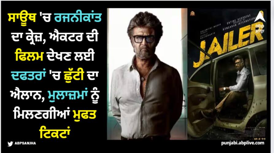 Offices Declared Holiday On Jailer Release: ਰਜਨੀਕਾਂਤ ਦੀ ਫਿਲਮ ਹੋਵੇ ਤੇ ਫੈਨਜ਼ ਸੁਪਰ ਐਕਸਾਇਟਡ ਨਾ ਹੋਣ, ਇਹ ਤਾਂ ਨਾਮੁਮਕਿਨ ਹੈ। ਥਲਾਈਵਾ ਦੀ ਆਉਣ ਵਾਲੀ ਫਿਲਮ 'ਜੇਲਰ' ਲੋਕਾਂ ਨੂੰ ਦੀਵਾਨਾ ਬਣਾ ਰਹੀ ਹੈ। ਵੈਸੇ ਤਾਂ ਸਾਊਥ 'ਚ ਰਜਨੀਕਾਂਤ ਨੂੰ ਰੱਬ ਵਾਂਗ ਪੂਜਿਆ ਜਾਂਦਾ ਹੈ। ਉਨ੍ਹਾਂ ਦੀ ਫਿਲਮ ਦੀ ਰਿਲੀਜ਼ ਵਾਲੇ ਦਿਨ ਸਾਊਥ 'ਚ ਤਿਓਹਾਰ ਵਰਗਾ ਮਾਹੌਲ ਹੋ ਜਾਂਦਾ ਹੈ। ਇੱਕ ਵਾਰ ਫਿਰ ਤੋਂ ਇਹੀ ਮਾਹੌਲ ਦੱਖਣ ਭਾਰਤ 'ਚ ਦੇਖਣ ਨੂੰ ਮਿਲ ਰਿਹਾ ਹੈ। ਰਜਨੀਕਾਂਤ ਦੀ ਫਿਲਮ 'ਜੇਲਰ' 10 ਅਗਸਤ ਨੂੰ ਰਿਲੀਜ਼ ਹੋਣ ਵਾਲੀ ਹੈ ਅਤੇ ਅਜਿਹੇ 'ਚ ਚੇਨਈ ਅਤੇ ਬੈਂਗਲੁਰੂ ਸਥਿਤ ਦਫਤਰਾਂ ਨੇ ਆਪਣੇ ਕਰਮਚਾਰੀਆਂ ਨੂੰ ਇਕ ਸ਼ਾਨਦਾਰ ਤੋਹਫਾ ਦਿੱਤਾ ਹੈ।
