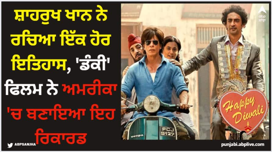 Dunki Box Office Collection: ਰਾਜਕੁਮਾਰ ਹਿਰਾਨੀ ਦੁਆਰਾ ਨਿਰਦੇਸ਼ਤ ਸ਼ਾਹਰੁਖ ਖਾਨ ਦੀ ਫਿਲਮ 'ਡੰਕੀ' ਨੇ ਆਪਣੀ ਦਿਲ ਨੂੰ ਛੂਹਣ ਵਾਲੀ ਕਹਾਣੀ ਨਾਲ ਦਰਸ਼ਕਾਂ ਦੇ ਦਿਲਾਂ 'ਤੇ ਡੂੰਘਾ ਪ੍ਰਭਾਵ ਪਾਇਆ ਹੈ। ਫਿਲਮ ਨੂੰ ਭਾਰਤ ਹੀ ਨਹੀਂ ਸਗੋਂ ਪੂਰੀ ਦੁਨੀਆ 'ਚ ਕਾਫੀ ਪਿਆਰ ਮਿਲ ਰਿਹਾ ਹੈ। ਫਿਲਮ ਨੇ ਰਿਲੀਜ਼ ਦੇ ਦਿਨ ਤੋਂ ਹੀ ਬਾਕਸ ਆਫਿਸ 'ਤੇ ਚੰਗੀ ਕਮਾਈ ਕੀਤੀ ਹੈ। ਹੁਣ 'ਡੰਕੀ' ਉੱਤਰੀ ਅਮਰੀਕਾ ਵਿੱਚ 5 ਮਿਲੀਅਨ ਡਾਲਰ ਦਾ ਅੰਕੜਾ ਪਾਰ ਕਰ ਚੁੱਕੀ ਹੈ।