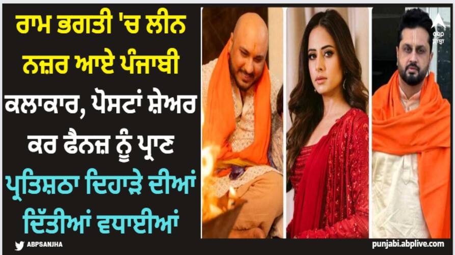 Punjabi Stars Celebrate Pran Pratishtha Day: 22 ਜਨਵਰੀ ਨੂੰ ਪੂਰੇ ਦੇਸ਼ 'ਚ ਦੀਵਾਲੀ ਦਾ ਤਿਓਹਾਰ ਮਨਾਇਆ ਜਾ ਰਿਹਾ ਹੈ। ਕਿਉਂਕਿ ਰਾਮ ਲੱਲਾ ਅਯੋਧਿਆ 'ਚ ਪਧਾਰੇ ਹਨ। ਇਸ ਮੌਕੇ ਬਾਲੀਵੁੱਡ ਤੋਂ ਲੈਕੇ ਖੇਡ ਤੇ ਸਿਆਸੀ ਹਸਤੀਆਂ ਨੇ ਵੀ ਅਯੋਧਿਆ ਰਾਮ ਮੰਦਰ ਹਾਜ਼ਰੀ ਲਵਾਈ। ਇਸ ਦਰਮਿਆਨ ਪੰਜਾਬੀ ਕਲਾਕਾਰ ਵੀ ਰਾਮ ਭਗਤੀ 'ਚ ਲੀਨ ਨਜ਼ਰ ਆ ਰਹੇ ਹਨ। ਸਰਗੁਣ ਮਹਿਤਾ ਤੋਂ ਬੀ ਪਰਾਕ ਨੇ ਫੈਨਜ਼ ਨੂੰ ਰਾਮ ਮੰਦਰ ਪ੍ਰਾਣ ਪ੍ਰਤਿਸ਼ਠਾ ਸਮਾਰੋਹ ਦੀਆਂ ਵਧਾਈਆਂ ਦਿੱਤੀਆਂ ਹਨ। ਇਸ ਮੌਕੇ ਸੈਲੇਬਸ ਨੇ ਸੋਸ਼ਲ ਮੀਡੀਆ 'ਤੇ ਖਾਸ ਪੋਸਟਾਂ ਸ਼ੇਅਰ ਕੀਤੀਆਂ।
