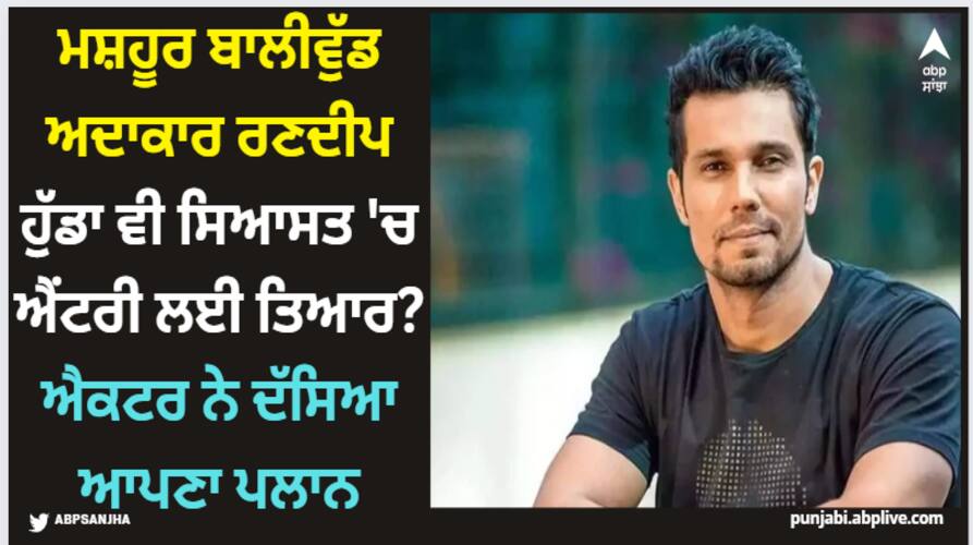 ਕੀ ਰਣਦੀਪ ਹੁੱਡਾ ਸਿਆਸਤ 'ਚ ਆਉਣ ਜਾ ਰਹੇ ਹਨ?ਹਾਲ ਹੀ 'ਚ ਪੀਟੀਆਈ ਨਾਲ ਗੱਲਬਾਤ ਦੌਰਾਨ ਰਣਦੀਪ ਹੁੱਡਾ ਨੇ ਰਾਜਨੀਤੀ 'ਚ ਆਪਣੀ ਐਂਟਰੀ ਨੂੰ ਲੈ ਕੇ ਆਪਣੀ ਪੂਰੀ ਯੋਜਨਾ ਦਾ ਖੁਲਾਸਾ ਕੀਤਾ। ਜਦੋਂ ਉਨ੍ਹਾਂ ਨੂੰ ਪੁੱਛਿਆ ਗਿਆ ਕਿ 'ਕੀ ਉਹ ਰਾਜਨੀਤੀ 'ਚ ਸ਼ਾਮਲ ਹੋਣਾ ਚਾਹੁੰਦੇ ਹਨ?' ਤਾਂ ਇਸ 'ਤੇ ਅਦਾਕਾਰ ਕਹਿੰਦੇ ਹਨ, 'ਮੈਨੂੰ ਲੋਕਾਂ ਦੀ ਸੇਵਾ ਕਰਨਾ ਜਾਂ ਕਿਸੇ ਦੀ ਮਦਦ ਕਰਨਾ ਪਸੰਦ ਹੈ। ਪਰ ਮੇਰੇ ਮੁਤਾਬਕ ਇਹ ਮੇਰੇ ਲਈ ਰਾਜਨੀਤੀ ਵਿੱਚ ਆਉਣ ਦਾ ਸਹੀ ਸਮਾਂ ਨਹੀਂ ਹੈ।