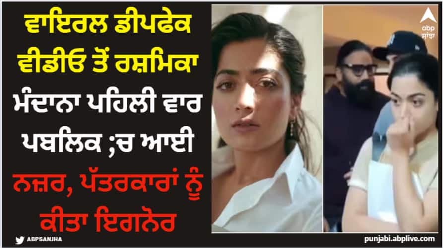 ਵਾਇਰਲ ਡੀਪਫੇਕ ਵੀਡੀਓ ਤੋਂ ਬਾਅਦ ਰਸ਼ਮੀਕਾ ਮੰਡਾਨਾ ਪਹਿਲੀ ਵਾਰ ਪਬਲਿਕ ;ਚ ਆਈ ਨਜ਼ਰਇਸ ਮਾਮਲੇ ਤੋਂ ਬਾਅਦ ਰਸ਼ਮਿਕਾ ਮੰਡਾਨਾ ਨੇ ਆਪਣੀ ਪਹਿਲੀ ਵਾਰ ਪਬਲਿਕ 'ਚ ਨਜ਼ਰ ਆਈ ਹੈ। ਅਭਿਨੇਤਰੀ ਨੂੰ ਆਪਣੇ ਸਹਿ-ਕਲਾਕਾਰ ਰਣਵੀਰ ਕਪੂਰ ਨਾਲ ਟੀ-ਸੀਰੀਜ਼ ਦੇ ਦਫਤਰ ਤੋਂ ਬਾਹਰ ਨਿਕਲਦੇ ਦੇਖਿਆ ਗਿਆ। ਵੀਡੀਓ 'ਚ ਦੇਖਿਆ ਜਾ ਸਕਦਾ ਹੈ ਕਿ ਅਦਾਕਾਰਾ ਕਾਫੀ ਡਰੀ ਹੋਈ ਨਜ਼ਰ ਆ ਰਹੀ ਹੈ।