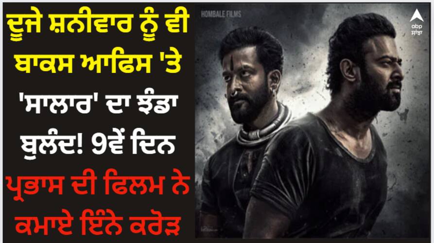 Salar Box Office Collection Day 9: ਪ੍ਰਭਾਸ ਦੀ ਫਿਲਮ 'ਸਲਾਰ' 22 ਦਸੰਬਰ ਨੂੰ ਦੁਨੀਆ ਭਰ ਦੇ ਸਿਨੇਮਾਘਰਾਂ 'ਚ ਰਿਲੀਜ਼ ਹੋਈ। ਫਿਲਮ ਨੂੰ ਰਿਲੀਜ਼ ਹੋਏ 9 ਦਿਨ ਹੋ ਚੁੱਕੇ ਹਨ ਅਤੇ 9 ਦਿਨਾਂ 'ਚ ਫਿਲਮ ਘਰੇਲੂ ਬਾਕਸ ਆਫਿਸ ਤੋਂ ਲੈ ਕੇ ਦੁਨੀਆ ਭਰ 'ਚ ਖੂਬ ਕਮਾਈ ਕਰ ਰਹੀ ਹੈ। ਫਿਲਮ ਨੇ ਪਹਿਲੇ ਹਫਤੇ ਹੀ ਘਰੇਲੂ ਬਾਕਸ ਆਫਿਸ 'ਤੇ 300 ਕਰੋੜ ਰੁਪਏ ਦਾ ਅੰਕੜਾ ਪਾਰ ਕਰ ਲਿਆ ਸੀ ਅਤੇ ਦੂਜੇ ਹਫਤੇ ਵੀ ਹਰ ਰੋਜ਼ ਕਰੋੜਾਂ ਰੁਪਏ ਕਮਾ ਰਹੀ ਹੈ। ਕਿਹਾ ਜਾ ਰਿਹਾ ਹੈ ਕਿ ਫਿਲਮ ਦੂਜੇ ਹਫਤੇ ਵੀ 400 ਕਰੋੜ ਦਾ ਅੰਕੜਾ ਪਾਰ ਕਰ ਸਕਦੀ ਹੈ।