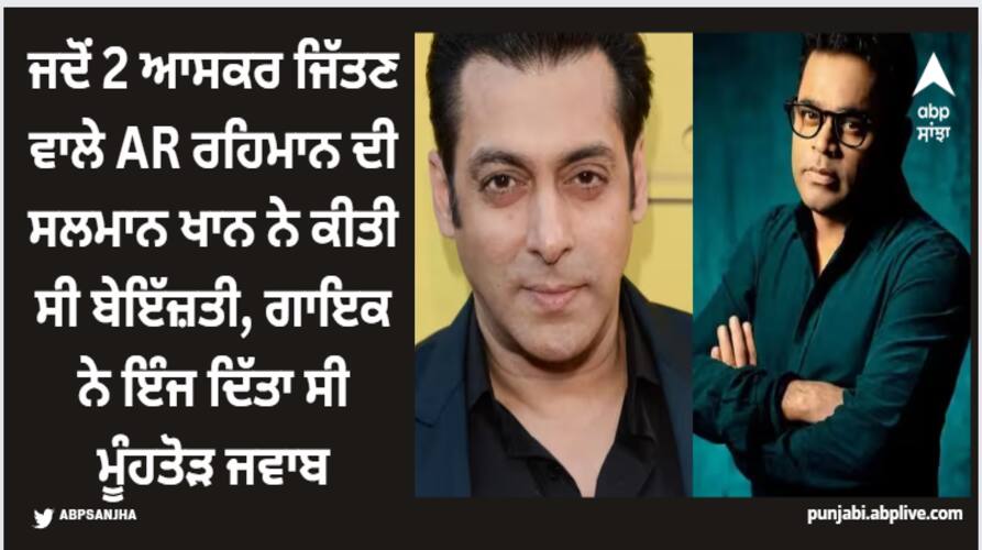 Salman Khan calls AR Rahman Average: ਸਲਮਾਨ ਖਾਨ ਬਾਲੀਵੁੱਡ ਵਿੱਚ ਆਪਣੇ ਦਬੰਗ ਸੁਭਾਅ ਲਈ ਜਾਣੇ ਜਾਂਦੇ ਹਨ। ਹਾਲਾਂਕਿ ਕਈ ਵਾਰ ਉਹ ਜਨਤਕ ਤੌਰ 'ਤੇ ਲੋਕਾਂ ਦਾ ਮਜ਼ਾਕ ਉਡਾਉਣ ਤੋਂ ਪਿੱਛੇ ਨਹੀਂ ਹਟਦੇ, ਜਿਸ ਕਾਰਨ ਕਈ ਵਾਰ ਲੋਕਾਂ ਦੇ ਦਿਲਾਂ ਨੂੰ ਠੇਸ ਪਹੁੰਚ ਜਾਂਦੀ ਹੈ। ਇਕ ਵਾਰ ਅਜਿਹਾ ਹੀ ਕੁਝ ਦੇਖਣ ਨੂੰ ਮਿਲਿਆ ਜਦੋਂ ਸਲਮਾਨ ਖਾਨ ਨੇ ਇਕ ਸਮਾਗਮ ਦੇ ਮੰਚ ਤੋਂ ਮਹਾਨ ਸੰਗੀਤਕਾਰ ਏ.ਆਰ. ਰਹਿਮਾਨ ਨੂੰ ਔਸਤ ਸੰਗੀਤਕਾਰ ਕਹਿ ਕੇ ਉਨ੍ਹਾਂ ਦਾ ਮਜ਼ਾਕ ਉਡਾਇਆ। ਜਿਸ ਤੋਂ ਬਾਅਦ ਏ.ਆਰ ਰਹਿਮਾਨ ਨੇ ਕੁਝ ਅਜਿਹਾ ਕਹਿ ਦਿੱਤਾ ਕਿ ਉੱਥੇ ਬੈਠੇ ਸਾਰੇ ਲੋਕ ਹੱਸਣ ਲਈ ਮਜਬੂਰ ਹੋ ਗਏ।