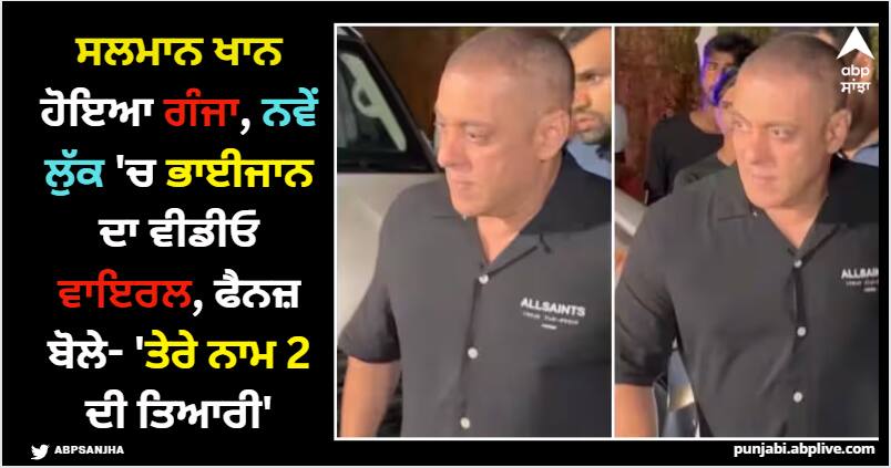 Salman Khan New Bald Look Video Viral: ਬਾਲੀਵੁੱਡ ਸੁਪਰਸਟਾਰ ਸਲਮਾਨ ਖਾਨ ਕਿਸੇ ਨਾ ਕਿਸੇ ਕਾਰਨ ਸੁਰਖੀਆਂ 'ਚ ਬਣੇ ਰਹਿੰਦੇ ਹਨ। ਇਸ ਸਮੇਂ ਅਦਾਕਾਰ ਦਾ ਇੱਕ ਵੀਡੀਓ ਸੋਸ਼ਲ ਮੀਡੀਆ 'ਤੇ ਕਾਫੀ ਵਾਇਰਲ ਹੋ ਰਿਹਾ ਹੈ। ਦਰਅਸਲ, 20 ਅਗਸਤ ਨੂੰ ਬਾਲੀਵੁੱਡ ਦੇ ਭਾਈਜਾਨ ਨੂੰ ਮੁੰਬਈ ਵਿੱਚ ਇੱਕ ਪਾਰਟੀ ਵਿੱਚ ਆਪਣੇ ਨਵੇਂ ਗੰਜੇ ਲੁੱਕ ਨਾਲ ਸਪੌਟ ਕੀਤਾ ਗਿਆ ਸੀ। ਅਦਾਕਾਰ ਦੇ ਇਸ ਨਵੇਂ ਲੁੱਕ ਨੂੰ ਲੈ ਕੇ ਚਰਚਾਵਾਂ ਸ਼ੁਰੂ ਹੋ ਗਈਆਂ ਹਨ ਕਿ ਸਲਮਾਨ ਖਾਨ 'ਤੇਰੇ ਨਾਮ 2' ਦੀ ਤਿਆਰੀ ਕਰ ਰਹੇ ਹਨ।