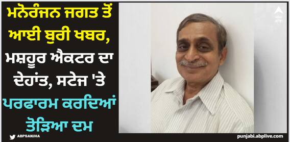 Marathi Actor Satish Joshi Death: ਮਰਾਠੀ ਫਿਲਮ ਇੰਡਸਟਰੀ ਤੋਂ ਬਹੁਤ ਹੀ ਦੁਖਦਾਈ ਖਬਰ ਆ ਰਹੀ ਹੈ। ਦਰਅਸਲ, ਦਿੱਗਜ ਅਭਿਨੇਤਾ ਸਤੀਸ਼ ਜੋਸ਼ੀ ਦਾ 12 ਮਈ ਐਤਵਾਰ ਨੂੰ ਦੇਹਾਂਤ ਹੋ ਗਿਆ ਸੀ। ਅਦਾਕਾਰ ਦੀ ਮੌਤ ਨਾਲ ਪੂਰੇ ਮਰਾਠੀ ਸਿਨੇਮਾ ਜਗਤ ਵਿੱਚ ਸੋਗ ਦੀ ਲਹਿਰ ਹੈ। ਅਭਿਨੇਤਾ ਦੇ ਬੇਵਕਤੀ ਦੇਹਾਂਤ ਦੀ ਖਬਰ ਉਨ੍ਹਾਂ ਦੇ ਦੋਸਤ ਰਾਜੇਸ਼ ਦੇਸ਼ਪਾਂਡੇ ਨੇ ਸੋਸ਼ਲ ਮੀਡੀਆ 'ਤੇ ਸਾਂਝੀ ਕੀਤੀ ਹੈ। ਇਹ ਵੀ ਖੁਲਾਸਾ ਹੋਇਆ ਕਿ ਅਭਿਨੇਤਾ ਦੀ ਸਟੇਜ 'ਤੇ ਪ੍ਰਦਰਸ਼ਨ ਦੌਰਾਨ ਮੌਤ ਹੋ ਗਈ ਸੀ।