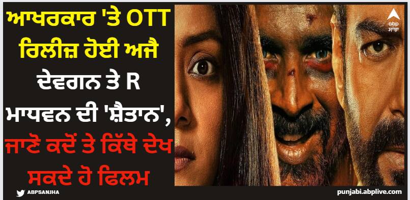 Shaitaan OTT Release: ਅਜੈ ਦੇਵਗਨ ਅਤੇ ਆਰ ਮਾਧਵਨ ਸਟਾਰਰ ਡਰਾਉਣੀ ਫਿਲਮ 'ਸ਼ੈਤਾਨ' ਨੇ ਥੀਏਟਰ ਵਿੱਚ ਕਾਫੀ ਹਲਚਲ ਮਚਾ ਦਿੱਤੀ ਹੈ। ਇਸ ਫਿਲਮ ਨੇ ਆਪਣੇ ਕਾਲੇ ਜਾਦੂ ਨਾਲ ਬਾਕਸ ਆਫਿਸ ਨੂੰ ਦੋ ਮਹੀਨੇ ਤੱਕ ਆਪਣੇ ਕਾਬੂ ਵਿੱਚ ਰੱਖਿਆ ਅਤੇ ਵਧੀਆ ਕਾਰੋਬਾਰ ਕੀਤਾ। ਦਰਸ਼ਕ ਵੀ ਇਸ ਫਿਲਮ ਦੀ ਓਟੀਟੀ ਰਿਲੀਜ਼ ਦਾ ਬੇਸਬਰੀ ਨਾਲ ਇੰਤਜ਼ਾਰ ਕਰ ਰਹੇ ਸਨ। ਆਪਣੀ ਥੀਏਟਰਿਕ ਰਿਲੀਜ਼ ਤੋਂ ਲਗਭਗ ਦੋ ਮਹੀਨਿਆਂ ਬਾਅਦ, 'ਸ਼ੈਤਾਨ' ਆਖਰਕਾਰ OTT ਪਲੇਟਫਾਰਮ 'ਤੇ ਆ ਗਈ ਹੈ। ਆਓ ਜਾਣਦੇ ਹਾਂ ਕਿ ਅਸੀਂ OTT 'ਤੇ ਇਸ ਅਲੌਕਿਕ ਥ੍ਰਿਲਰ ਨੂੰ ਕਦੋਂ ਅਤੇ ਕਿੱਥੇ ਦੇਖ ਸਕਦੇ ਹਾਂ?