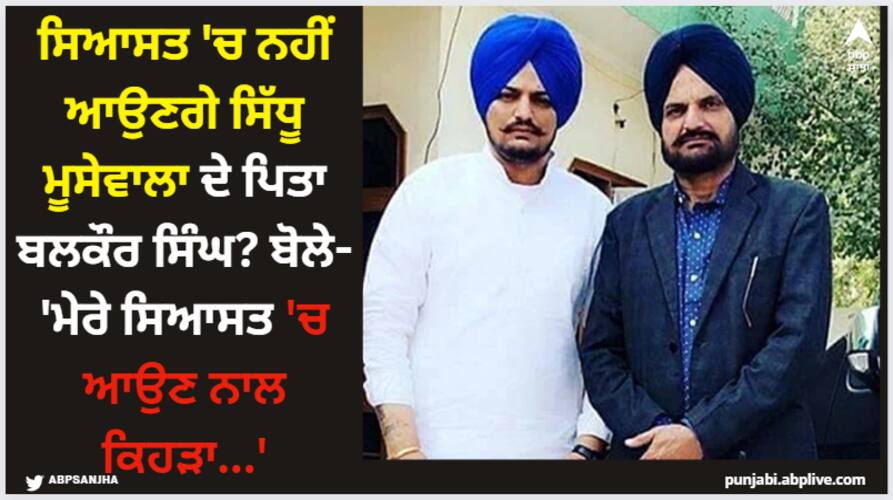 Balkaur Singh On punjab Politics: ਸਿੱਧੂ ਮੂਸੇਵਾਲਾ ਦੇ ਪਿਤਾ ਬਲਕੌਰ ਸਿੰਘ ਇੰਨੀਂ ਦਿਨੀਂ ਸੁਰਖੀਆਂ 'ਚ ਬਣੇ ਹੋਏ ਹਨ। ਹਾਲ ਹੀ 'ਚ ਬਲਕੌਰ ਸਿੰਘ ਨੇ ਕਿਸੇ ਨਿੱਜੀ ਯੂਟਿਊਬ ਚੈਨਲ ਨੂੰ ਇੰਟਰਵਿਊ ਦਿੱਤਾ ਸੀ, ਜਿਸ ਵਿੱਚ ਉਨ੍ਹਾਂ ਨੇ ਕਈ ਸੰਜੀਦਾ ਮੁੱਦਿਆਂ 'ਤੇ ਗੱਲਬਾਤ ਕੀਤੀ। ਉਨ੍ਹਾਂ ਵਿੱਚੋਂ ਇੱਕ ਵਿਸ਼ਾ ਇਹ ਵੀ ਸੀ ਕਿ ਕੀ ਬਲਕੌਰ ਸਿੰਘ ਲੋਕ ਸਭਾ 2024 'ਚ ਚੋਣ ਮੈਦਾਨ ਵਿੱਚ ਉੱਤਰਨਗੇ? ਕੀ ਬਲਕੌਰ ਸਿੰਘ ਸਿਆਸਤ 'ਚ ਕਦਮ ਰੱਖਣਗੇ?