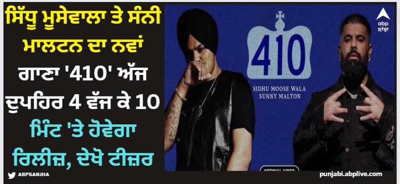 ਜਾਣਕਾਰੀ ਅਨੁਸਾਰ ਸੰਨੀ ਮਾਲਟਨ ਦੀ ਪੋਸਟ ਮੁਤਾਬਕ '410' ਗੀਤ ਅੱਜ ਯਾਨਿ 10 ਅਪ੍ਰੈਲ ਨੂੰ 4 ਵੱਜ ਕੇ 10 ਮਿੰਟ 'ਤੇ ਰਿਲੀਜ਼ ਹੋਣ ਜਾ ਰਿਹਾ ਹੈ। ਇਸ ਗੀਤ ਨੂੰ 410 ਦਾ ਨਾਂ ਦਿੱਤਾ ਗਿਆ ਹੈ। ਇਹੀ ਕਾਰਨ ਹੈ ਕਿ ਇਹ ਗੀਤ ਵੀ ਚੌਥੇ ਮਹੀਨੇ ਦੀ 10 ਤਰੀਕ ਨੂੰ ਰਿਲੀਜ਼ ਹੋ ਰਿਹਾ ਹੈ। ਇਸ ਗੀਤ ਦਾ ਪੋਸਟਰ ਰਿਲੀਜ਼ ਕਰਨ ਦੇ ਨਾਲ ਹੀ ਰੈਪਰ ਸੰਨੀ ਮਾਲਟਨ ਨੇ ਜਾਣਕਾਰੀ ਦਿੱਤੀ ਸੀ ਕਿ ਇਹ ਗੀਤ ਉਨ੍ਹਾਂ ਦੇ ਯੂਟਿਊਬ ਚੈਨਲ 'ਤੇ ਹੀ ਰਿਲੀਜ਼ ਕੀਤਾ ਜਾਵੇਗਾ। ਤੁਹਾਨੂੰ ਦੱਸ ਦੇਈਏ ਕਿ ਸੰਨੀ ਮਾਲਟਨ ਅਤੇ ਬਿੱਗ ਬਰਡ ਨੇ ਸਿੱਧੂ ਮੂਸੇਵਾਲਾ ਨਾਲ ਕਈ ਗੀਤਾਂ ਵਿੱਚ ਕੰਮ ਕੀਤਾ ਹੈ। ਇਸ ਵਿੱਚ ਲੈਵਲ, ਨੇਵਰ ਫੋਲਡ, ਜਸਟ ਲਿਸਨ ਵਰਗੇ ਕਈ ਹਿੱਟ ਗੀਤ ਸ਼ਾਮਲ ਹਨ। ਇਨ੍ਹਾਂ ਗੀਤਾਂ ਨੂੰ ਲੋਕਾਂ ਨੇ ਖੂਬ ਪਿਆਰ ਦਿੱਤਾ।
