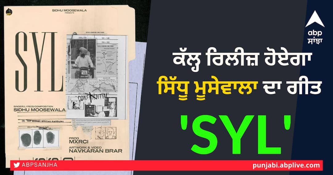 ਚੰਡੀਗੜ੍ਹ: ਪੰਜਾਬੀ ਗਾਇਕ ਸਿੱਧੂ ਮੂਸੇਵਾਲਾ ਦਾ ਮੌਤ ਤੋਂ ਬਾਅਦ ਕੱਲ੍ਹ ਗੀਤ ਰਿਲੀਜ਼ ਹੋਣ ਵਾਲਾ ਹੈ। ਸਿੱਧੂ ਮੂਸੇ ਵਾਲਾ ਦਾ ਮੌਤ ਮਗਰੋਂ ਇਹ ਪਹਿਲਾ ਗੀਤ ਹੈ ਜੋ ਕੱਲ ਸ਼ਾਮ 6 ਵਜੇ ਰਿਲੀਜ਼ ਕੀਤਾ ਜਾਵੇਗਾ।ਦੱਸ ਦੇਈਏ ਕਿ ਸਿੱਧੂ ਮੂਸੇਵਾਲਾ ਦਾ ਗੀਤ SYL ਰਿਲੀਜ਼ ਹੋਏਗਾ।