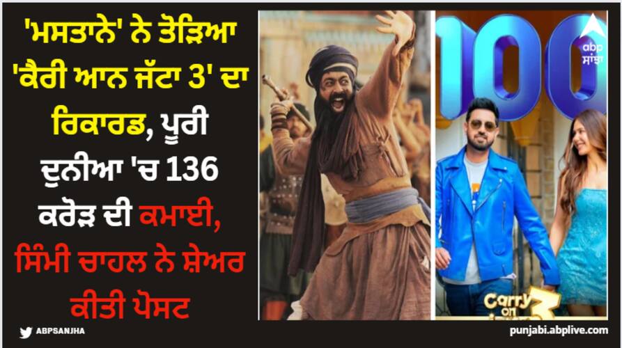 Mastaney Shatters Carry On Jatta 3 Record: ਪੰਜਾਬੀ ਇੰਡਸਟਰੀ ਲਈ ਸਾਲ 2023 ਕਾਫੀ ਵਧੀਆ ਸਾਬਤ ਹੋ ਰਿਹਾ ਹੈ। ਇਸ ਸਾਲ ਪੰਜਾਬੀ ਸਿਨੇਮਾ ਦੀ ਕਾਮਯਾਬੀ ਦਾ ਗਰਾਫ ਹੈਰਾਨੀਜਨਕ ਢੰਗ ਨਾਲ ਵਧਿਆ ਹੈ। ਪਹਿਲਾਂ 'ਕੈਰੀ ਆਨ ਜੱਟਾ 3' ਨੇ 100 ਕਰੋੜ ਤੋਂ ਵੱਧ ਦੀ ਕਮਾਈ ਕਰਕੇ ਇਤਿਹਾਸ ਰਚਿਆ ਤੇ ਹੁਣ ''ਕੈਰੀ....3'' ਦਾ ਰਿਕਾਰਡ 'ਮਸਤਾਨੇ' ਫਿਲਮ ਨੇ ਤੋੜ ਦਿੱਤਾ ਹੈ।