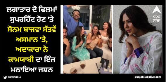 ਇਸ ਸਭ ਤੋਂ ਬਾਅਦ ਹੁਣ ਸੋਨਮ ਬਾਜਵਾ ਇੰਨੀਂ ਦਿਨੀਂ ਸੱਤਵੇਂ ਅਸਮਾਨ 'ਤੇ ਉੱਡ ਰਹੀ ਹੈ। ਸੋਨਮ ਨੇ ਆਪਣੇ ਸੋਸ਼ਲ ਮੀਡੀਆ ਅਕਾਊਂਟ 'ਤੇ ਇੱਕ ਵੀਡੀਓ ਸ਼ੇਅਰ ਕੀਤਾ ਹੈ, ਜਿਸ ਵਿੱਚ ਅਦਾਕਾਰਾ ਆਪਣੇ ਦੋਸਤਾਂ ਦੇ ਨਾਲ ਜਸ਼ਨ ਮਨਾਉਂਦੀ ਨਜ਼ਰ ਆ ਰਹੀ ਹੈ। ਵੀਡੀਓ 'ਚ ਬਾਲੀਵੁੱਡ ਅਦਾਕਾਰ ਅਪਾਰਸ਼ਕਤੀ ਖੁਰਾਣਾ ਤੇ ਮੌਨੀ ਰਾਏ ਸਮੇਤ ਹੋਰ ਕਈ ਕਲਾਕਾਰ ਨਜ਼ਰ ਆ ਰਹੇ ਹਨ। ਉਹ ਸੋਨਮ ਦੀ ਕਾਮਯਾਬੀ ਦਾ ਜਸ਼ਨ ਮਨਾ ਰਹੇ ਹਨ। ਵੀਡੀਓ 'ਚ ਸੋਨਮ ਬਾਜਵਾ ਨੂੰ ਕੇਕ ਕੱਟਦੇ ਹੋਏ ਦੇਖਿਆ ਜਾ ਸਕਦਾ ਹੈ। ਫੈਨਜ਼ ਇਸ ਵੀਡੀਓ 'ਤੇ ਕਮੈਂਟ ਕਰਕੇ ਸੋਨਮ 'ਤੇ ਖੂਬ ਪਿਆਰ ਦੀ ਬਰਸਾਤ ਕਰ ਰਹੇ ਹਨ। ਇਸ ਦੇ ਨਾਲ ਨਾਲ ਹੀ ਸੋਨਮ ਆਪਣੀ ਫਿਲਮ 'ਗੋਡੇ ਗੋਡੇ ਚਾਅ' ਦੇ ਗਾਣੇ 'ਅੱਲ੍ਹੜਾਂ ਦੇ' 'ਤੇ ਡਾਂਸ ਕਰਦੀ ਨਜ਼ਰ ਆ ਰਹੀ ਹੈ। ਦੇਖੋ ਸੋਨਮ ਦਾ ਇਹ ਵੀਡੀਓ: