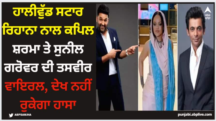 Kapil Sharma Sunil Grover With Rihanna: ਹਾਲੀਵੁੱਡ ਪੌਪ ਸਿੰਗਰ ਰਿਹਾਨਾ ਪੂਰੀ ਦੁਨੀਆ 'ਚ ਕਾਫੀ ਮਸ਼ਹੂਰ ਹੈ। ਉਸ ਦੇ ਗੀਤਾਂ ਨੂੰ ਹਰ ਪਾਸੇ ਪਸੰਦ ਕੀਤਾ ਜਾਂਦਾ ਹੈ। ਹਾਲ ਹੀ 'ਚ ਰਿਹਾਨਾ ਅਨੰਤ ਅੰਬਾਨੀ ਅਤੇ ਰਾਧਿਕਾ ਮਰਚੈਂਟ ਦੇ ਪ੍ਰੀ-ਵੈਡਿੰਗ 'ਚ ਪਰਫਾਰਮ ਕਰਨ ਲਈ ਜਾਮਨਗਰ ਪਹੁੰਚੀ ਸੀ। ਇਸ ਦੌਰਾਨ ਰਿਹਾਨਾ ਦੀਆਂ ਕਈ ਸੈਲੇਬਸ ਨਾਲ ਤਸਵੀਰਾਂ ਵਾਇਰਲ ਹੋਈਆਂ। ਇਸ ਦੌਰਾਨ ਰਿਹਾਨਾ ਨਾਲ ਕਪਿਲ ਸ਼ਰਮਾ ਅਤੇ ਸੁਨੀਲ ਗਰੋਵਰ ਦੀ ਤਸਵੀਰ ਵੀ ਸਾਹਮਣੇ ਆਈ ਹੈ।