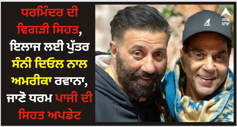 ਇੰਡੀਆ ਟੂਡੇ ਦੀ ਇਕ ਰਿਪੋਰਟ ਮੁਤਾਬਕ ਕਿਹਾ ਜਾ ਰਿਹਾ ਹੈ ਕਿ ਧਰਮਿੰਦਰ ਪਿਛਲੇ ਕੁਝ ਸਮੇਂ ਤੋਂ ਸਿਹਤ ਸੰਬੰਧੀ ਸਮੱਸਿਆਵਾਂ ਦਾ ਸਾਹਮਣਾ ਕਰ ਰਹੇ ਸਨ ਅਤੇ ਹੁਣ ਉਨ੍ਹਾਂ ਦਾ ਬੇਟਾ ਸੰਨੀ ਦਿਓਲ ਉਨ੍ਹਾਂ ਨੂੰ ਆਪਣੇ ਇਲਾਜ ਲਈ ਅਮਰੀਕਾ ਲੈ ਗਿਆ ਹੈ। ਸੰਨੀ ਦਿਓਲ ਨੇ ਆਪਣੇ ਕਰੀਅਰ ਤੋਂ ਕੁਝ ਦਿਨਾਂ ਲਈ ਬ੍ਰੇਕ ਲਿਆ ਹੈ ਅਤੇ ਆਪਣੇ ਪਿਤਾ ਦੀ ਦੇਖਭਾਲ ਕਰਨ ਦਾ ਫੈਸਲਾ ਕੀਤਾ ਹੈ।